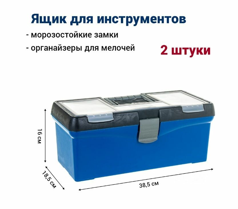 Ящик для инструментов Jettools 15 c морозостойким замком и органайзером 385х185х160 мм, 2 штуки интересное: