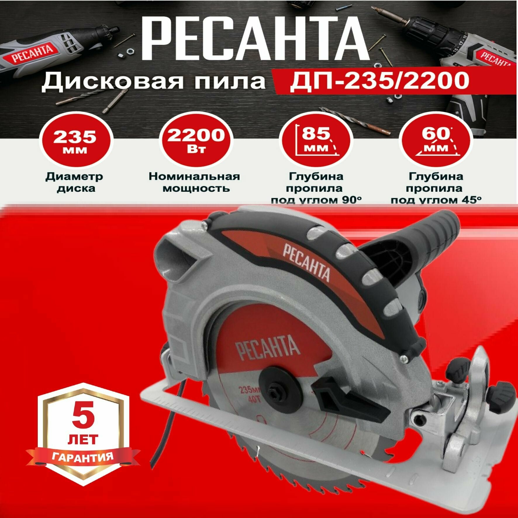 Пила циркулярная Ресанта ДП-235/2200, 2200 Вт, 235 мм