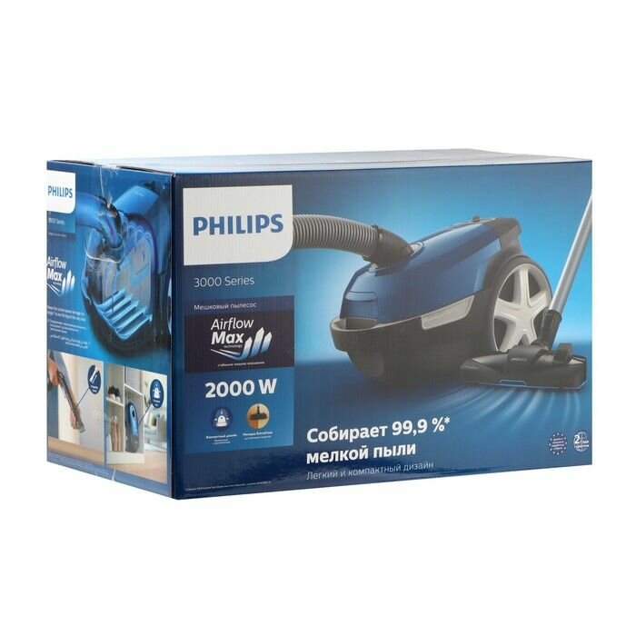 Пылесос 3000 Series XD3010/01, 2000 Вт, мешок 3 л, 83 дБ, сине-чёрный
