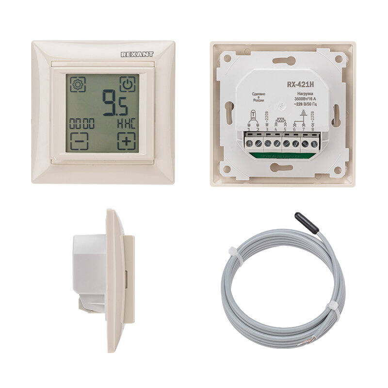Терморегулятор сенсорный программируемый Rexant Rx-421h, бежевый, совместим с Legrand серии Valena 5 .