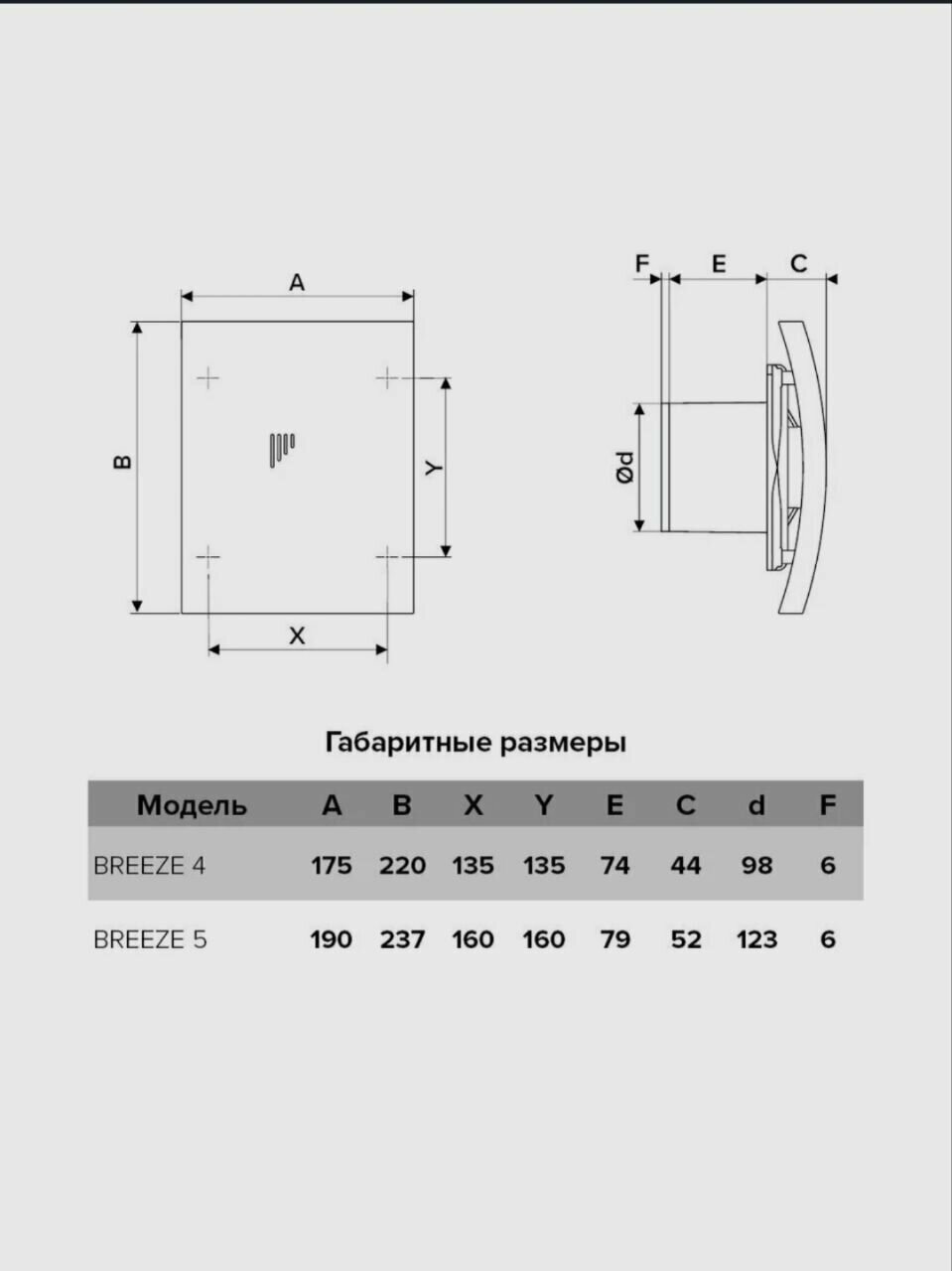 Вентилятор осевой вытяжной с обратным клапаном, D 98 BREEZE 4C