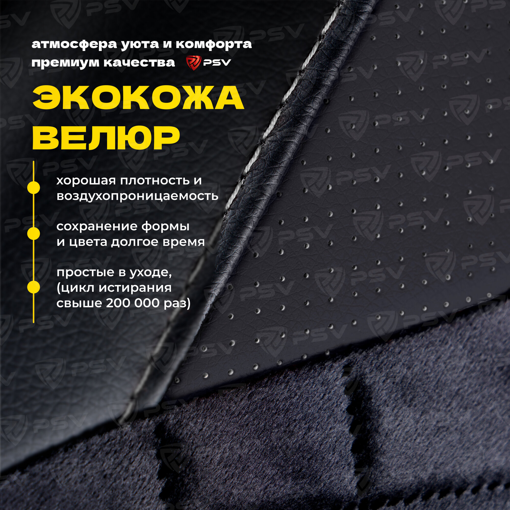 СохранитьЧехлы универсальные в машину PSV King Next (Черный/отстрочка серая), велюр терморомб + экокожа интересное: