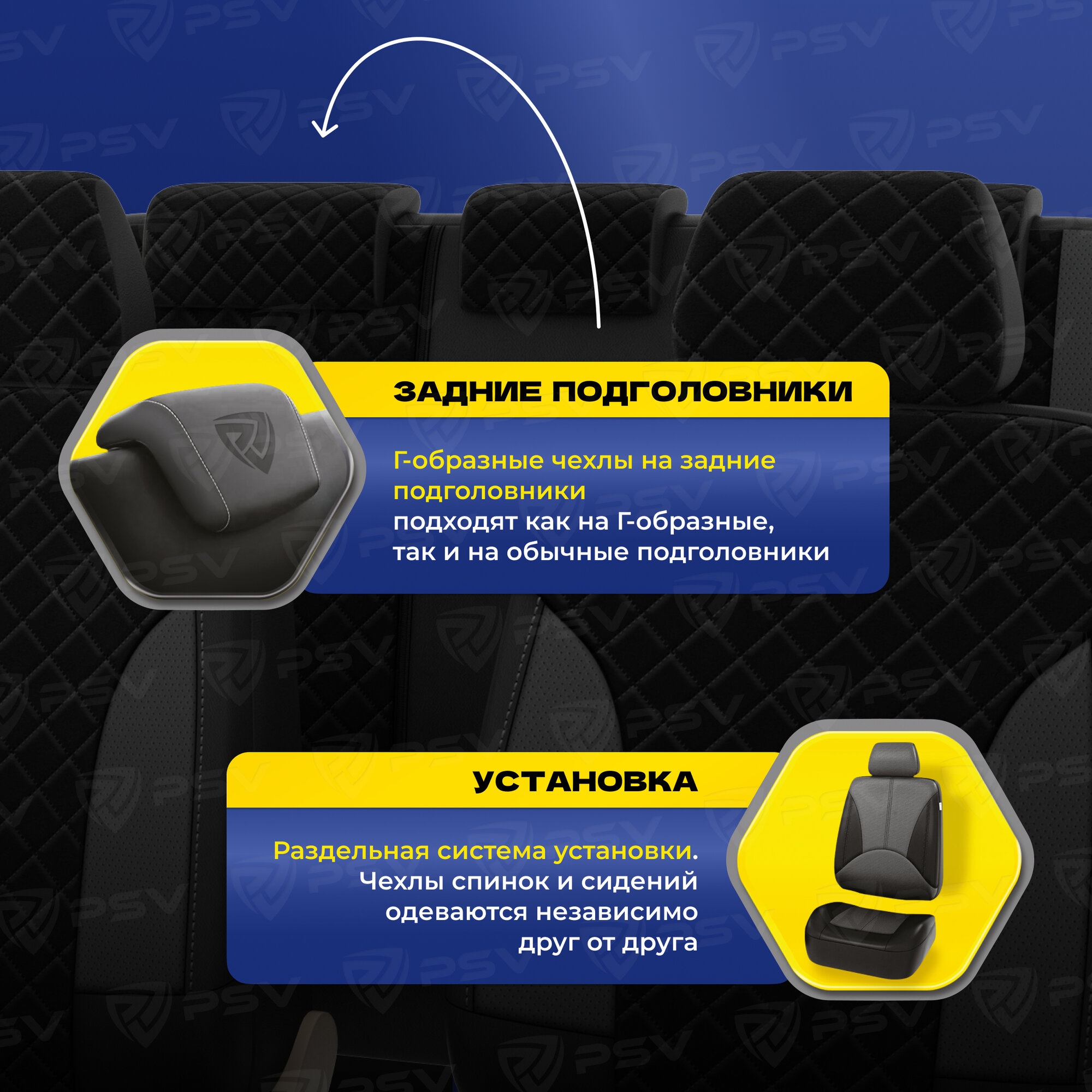 Чехлы универсальные в машину PSV King Next (Черный/отстрочка черная), велюр терморомб + экокожа