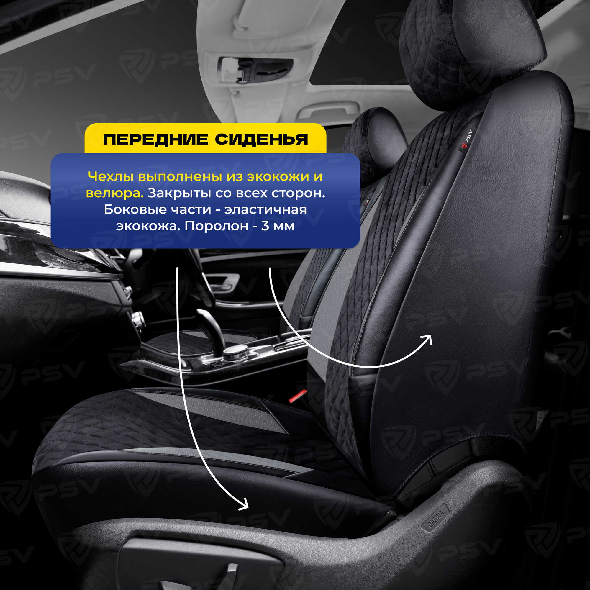СохранитьЧехлы универсальные в машину PSV King Next (Черный-Серый), велюр терморомб + экокожа интересное: