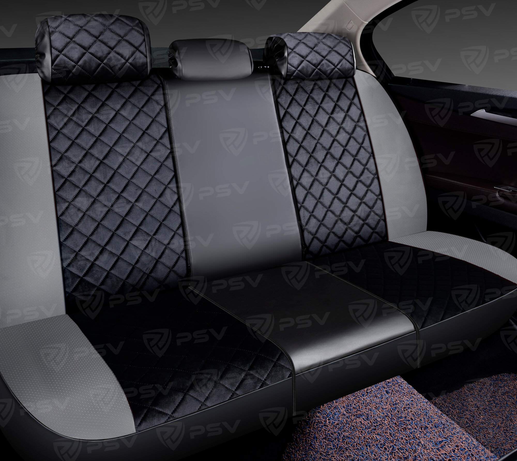 Чехлы универсальные в машину PSV King Next (Черный/отстрочка серая), велюр терморомб + экокожа