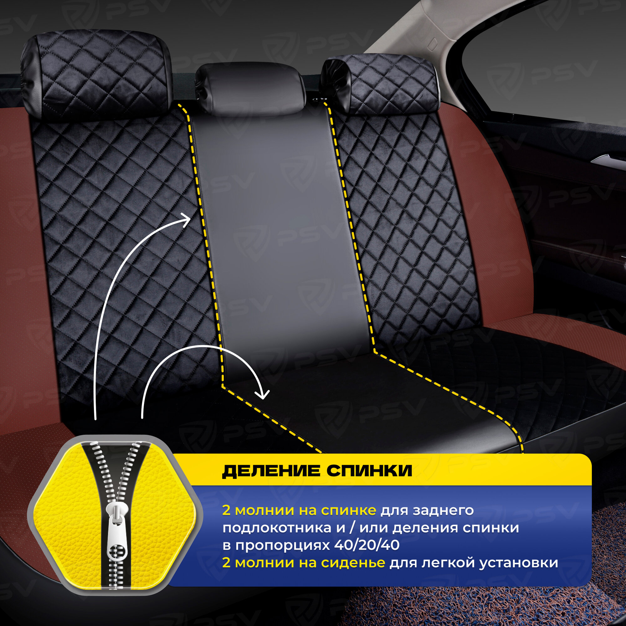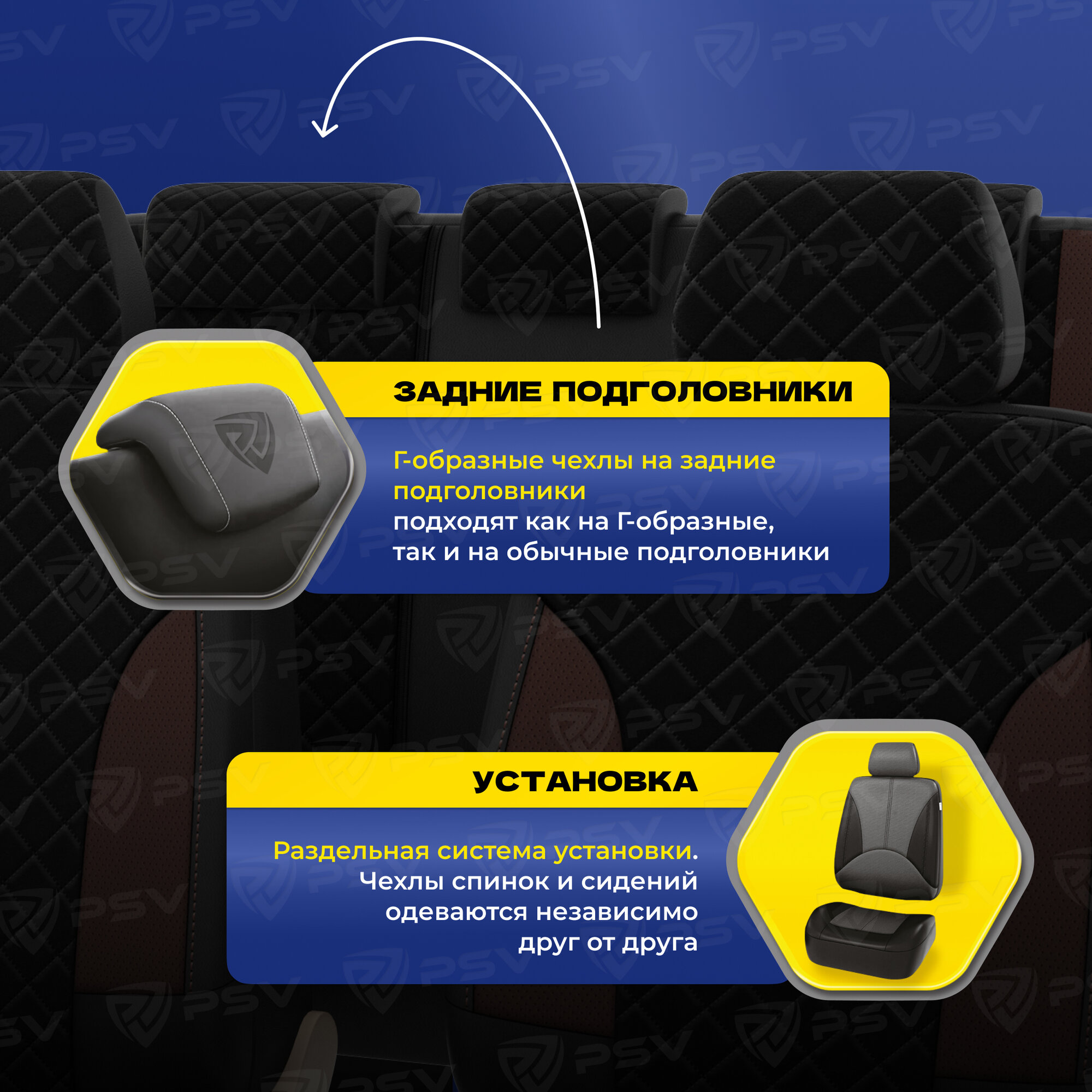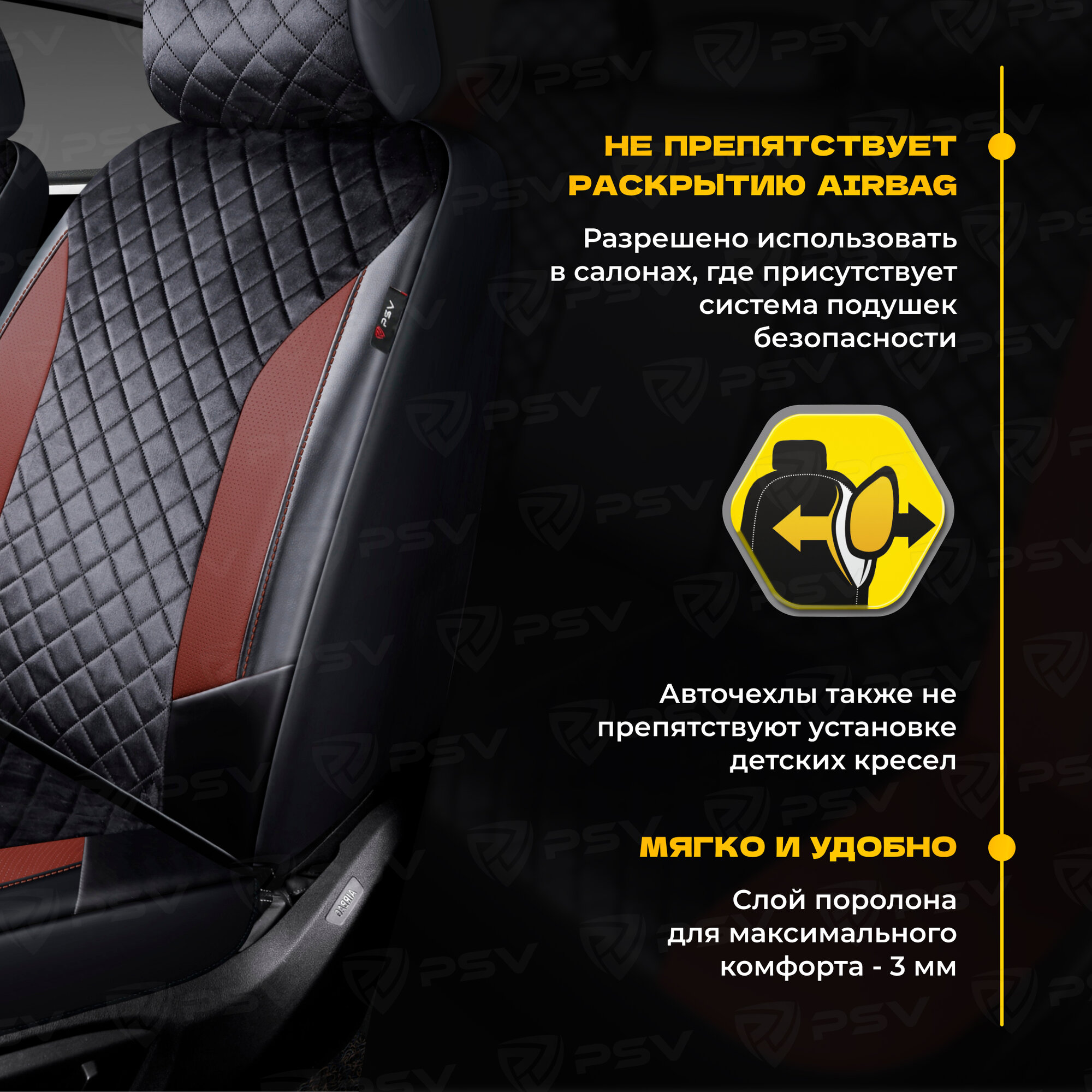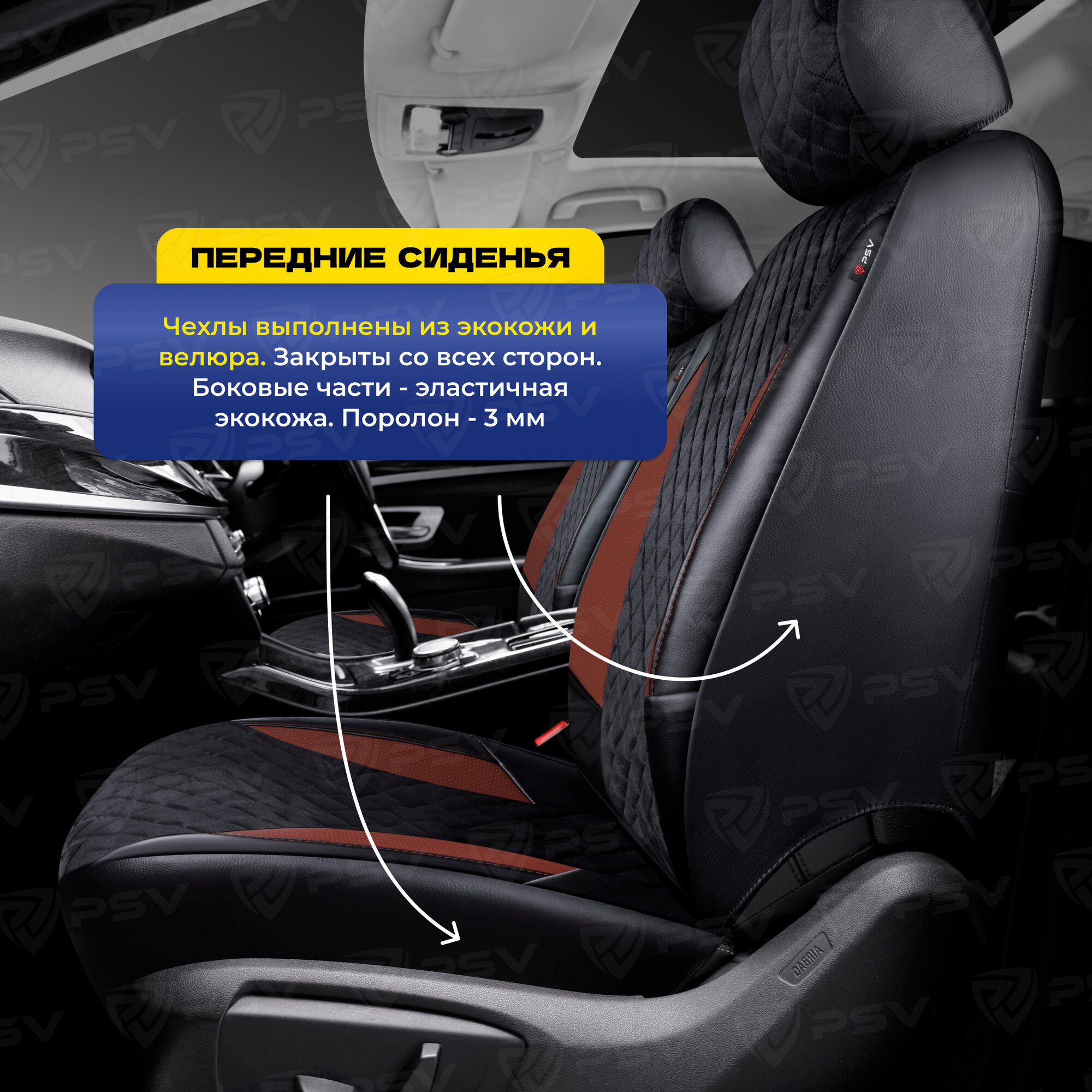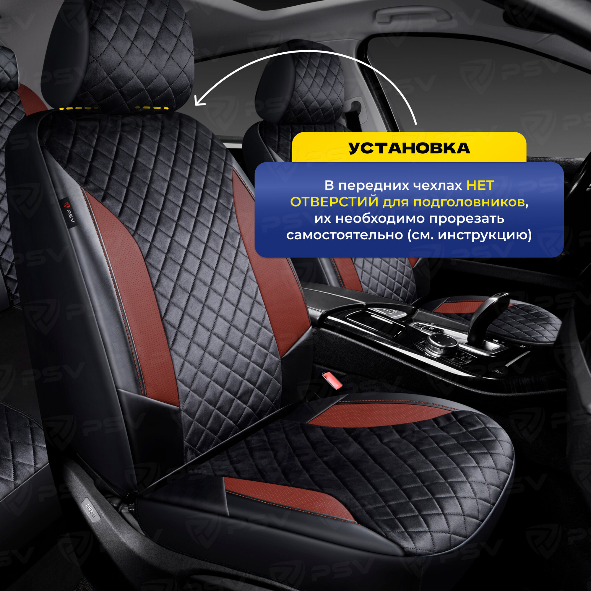 СохранитьЧехлы универсальные в машину PSV King Next (Черный-Коричневый), велюр терморомб + экокожа интересное: