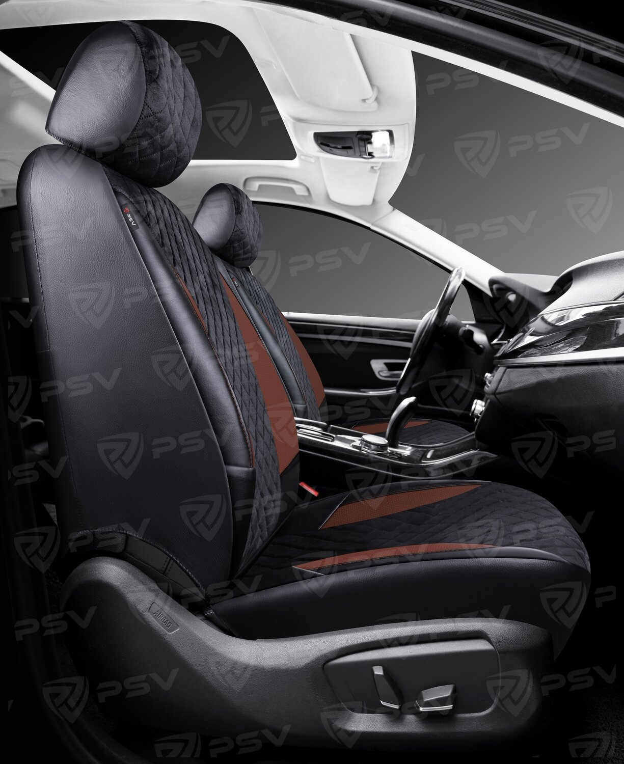 Купить Чехлы универсальные в машину PSV King Next (Черный-Коричневый), велюр терморомб + экокожа