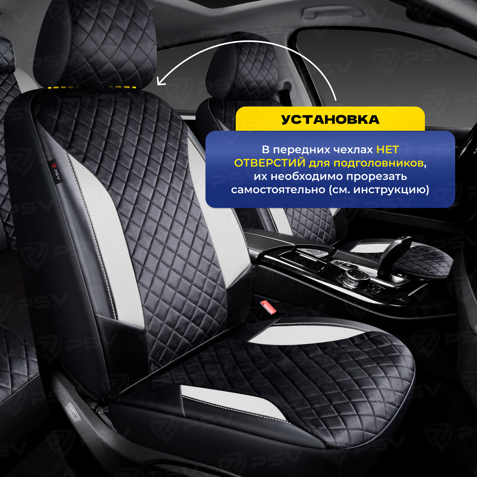 Чехлы универсальные в машину PSV King Next (Черный/отстрочка белая), велюр терморомб + экокожа