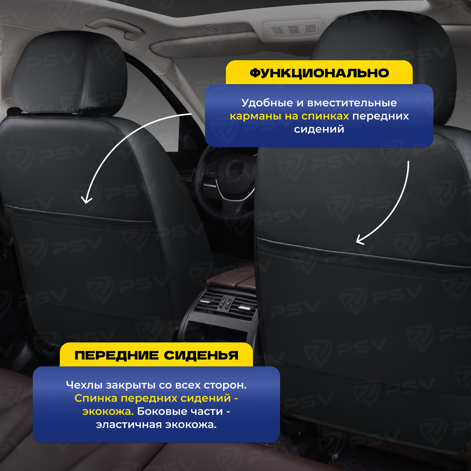 Чехлы на сидения автомобиля PSV, комплект в машину King Next, Черная экокожа с черной строчкой