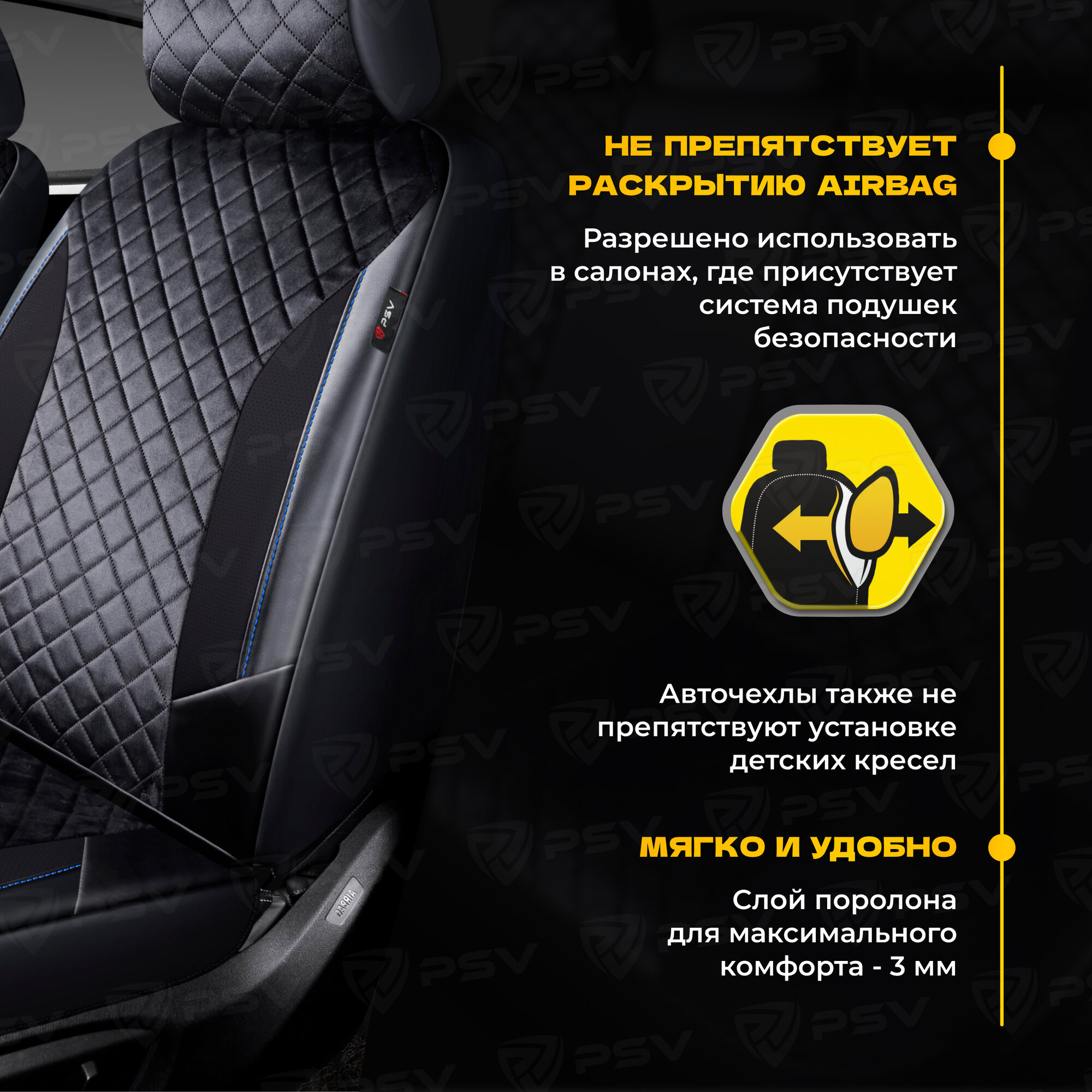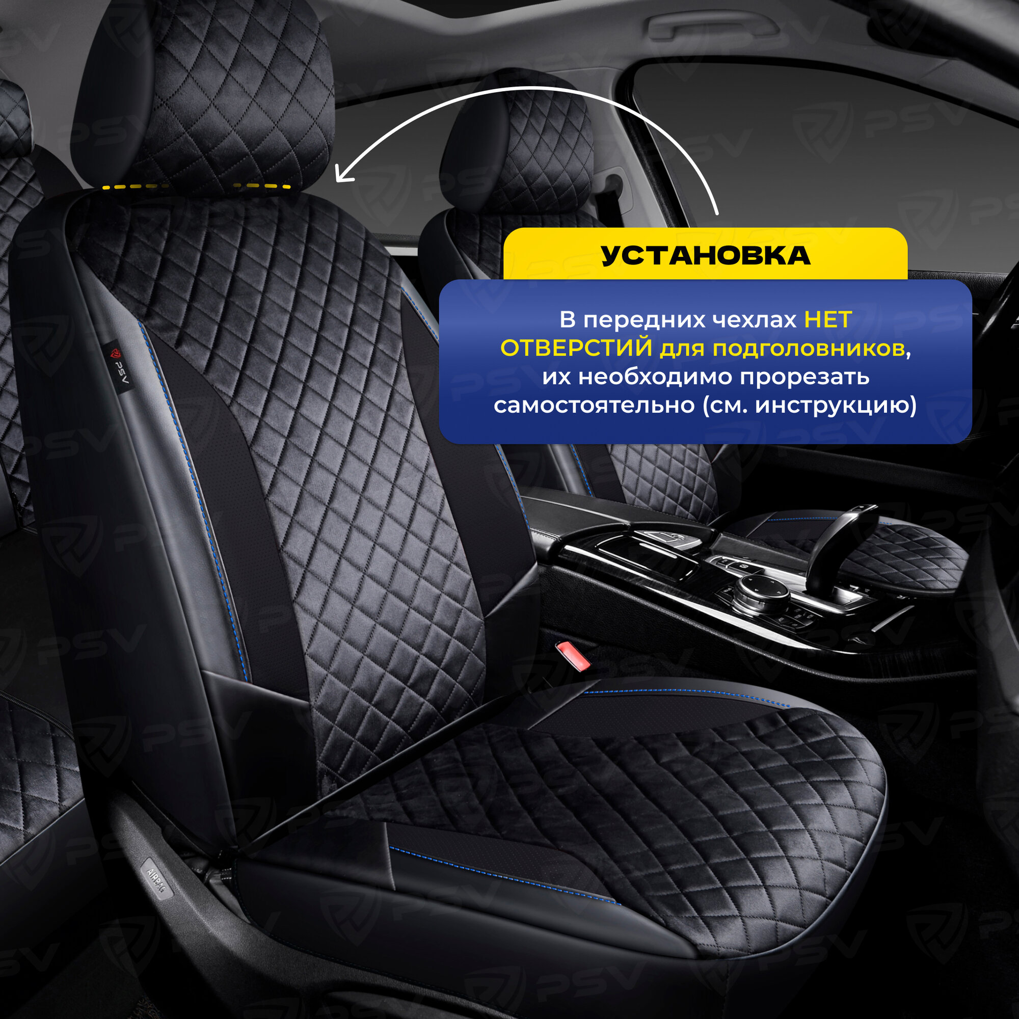 СохранитьЧехлы универсальные в машину PSV King Next (Черный/отстрочка синяя), велюр терморомб + экокожа интересное: