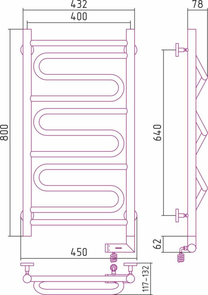 Электрический полотенцесушитель Сунержа Элегия 2.0 800x400 птэн без покрытия