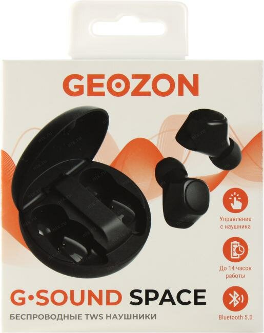 Наушники TWS Geozon Space G-S07BLK беспроводные, IPX4, 40 мАч/300 мАч, пластик, черные