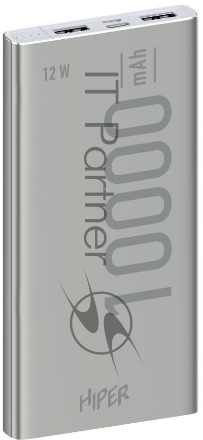 Hiper Metal 10K Silver Мобильный аккумулятор 10000mAh 2.4A 2xUSB серебристый