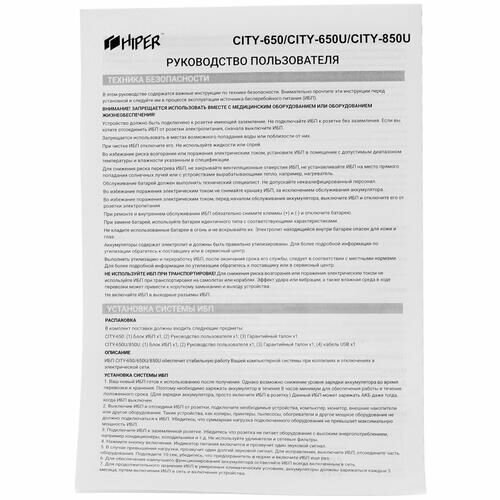 ИБП HIPER CITY-650 (650ВА/365Вт)