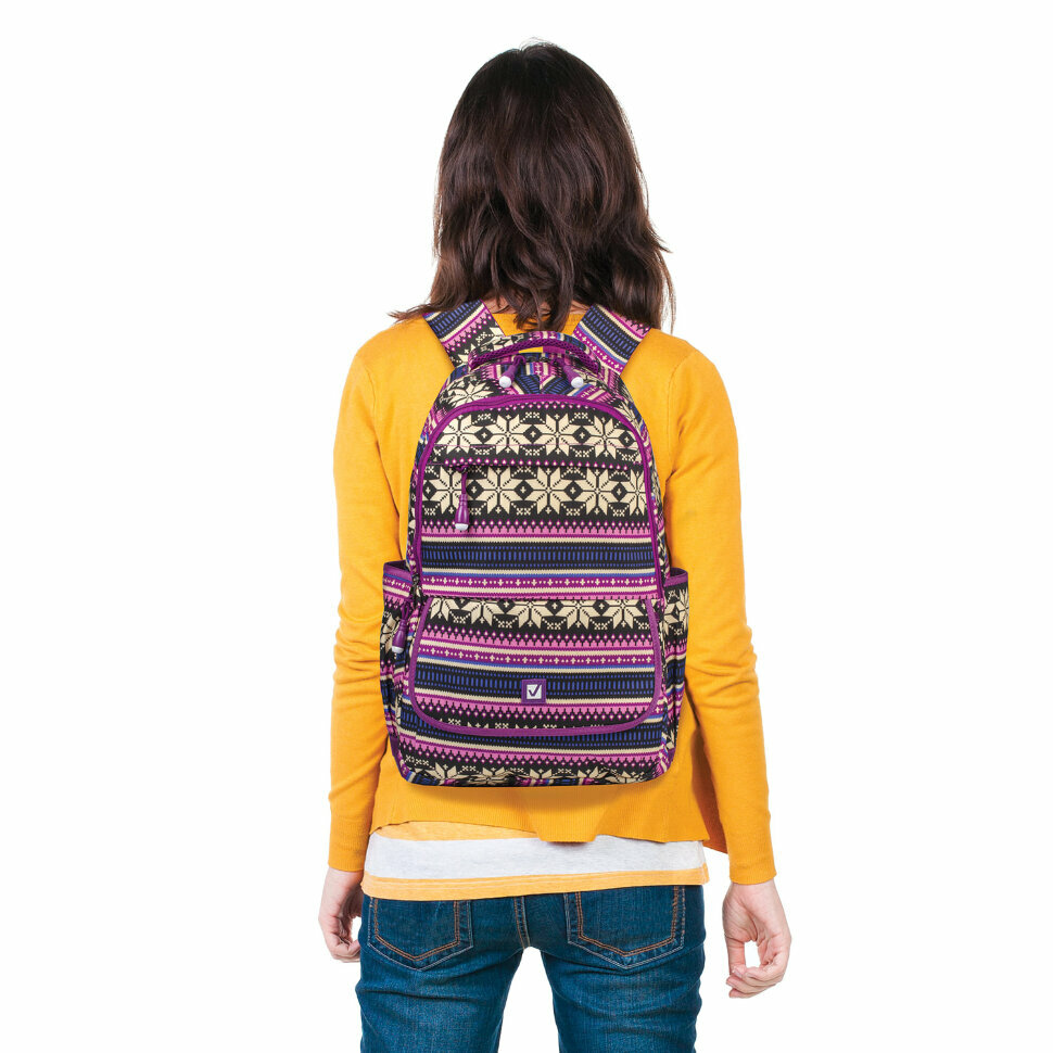 Рюкзак BRAUBERG молодежный, Фиолетовые узоры, канвас, 47х32х14 см, 227069