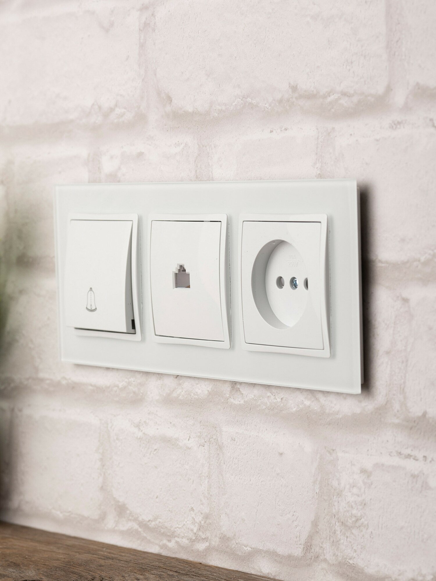 Рамка электроустановочная 3-местная стеклянная Минск, белая