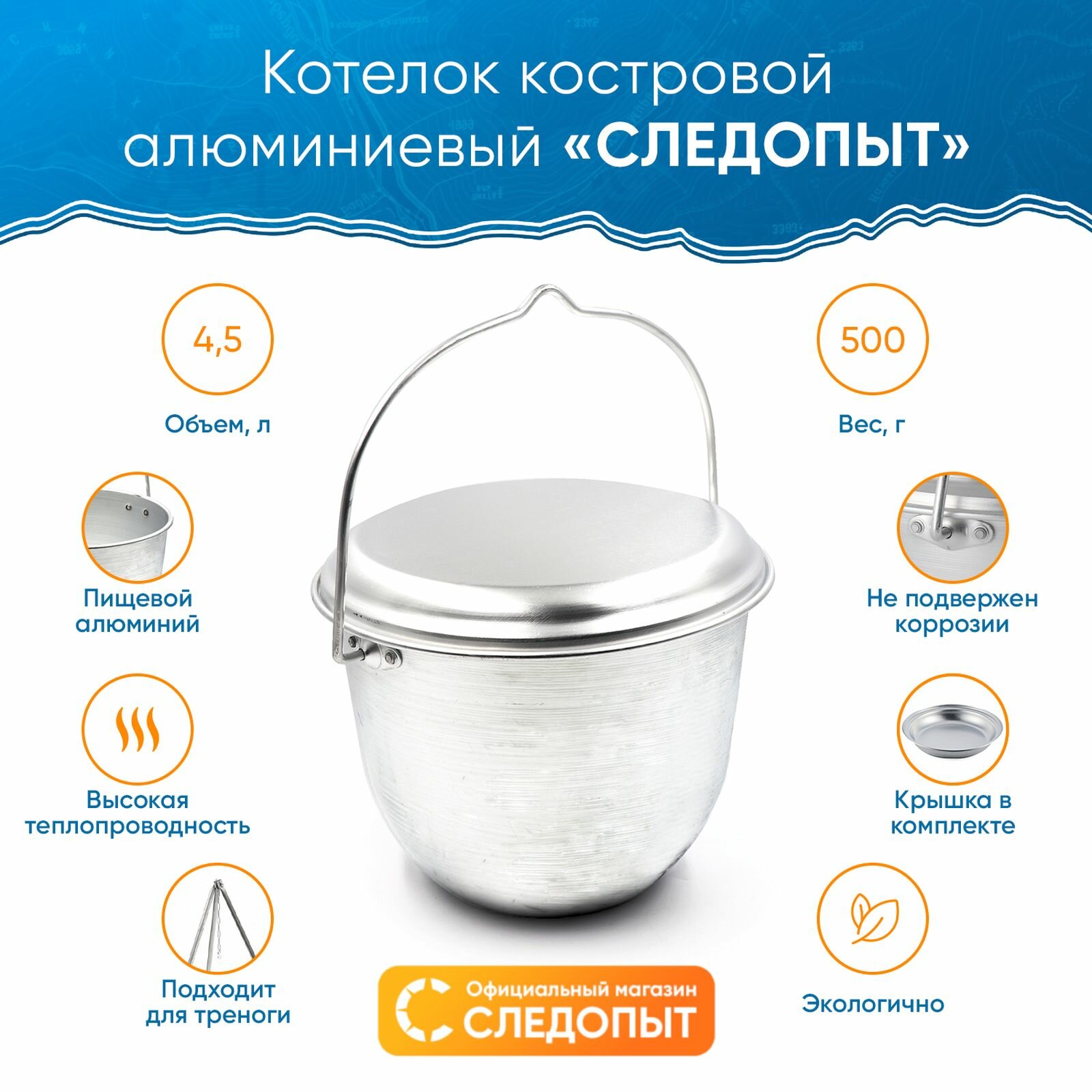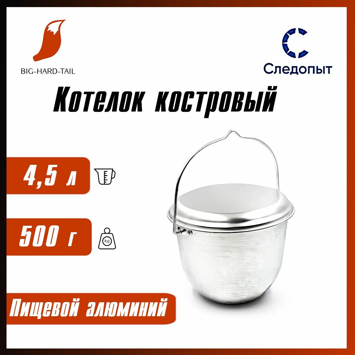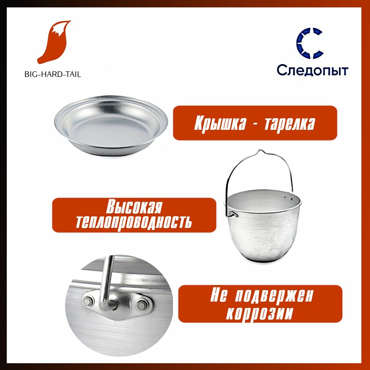 Котелок туристический 4,5 л "следопыт" , Казан костровой алюминиевый , Ковш для похода , Котел с крышкой - салатницей , Казанок для ухи , Посуда походная