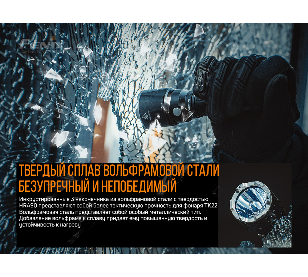СохранитьТактический фонарь с аккумулятором Fenix TK22UE интересное: