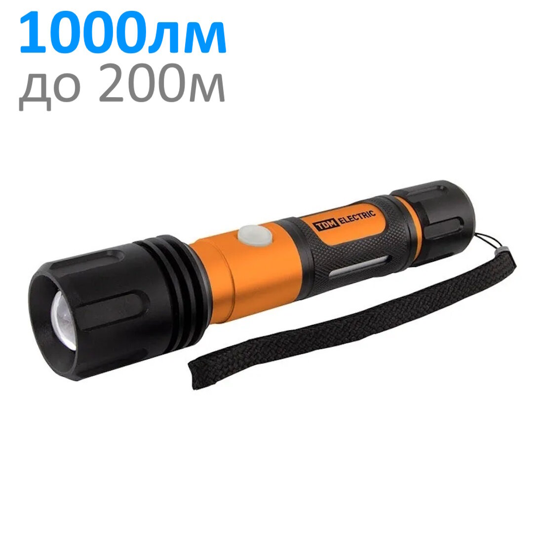 TDM Фонарь ручной 1СВД 10Вт 1000лм 18650 USB IPx4 TDM