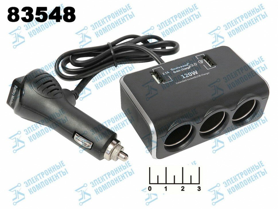 Прикуриватель-3 + 2USB Olesson 1639 автомобильный