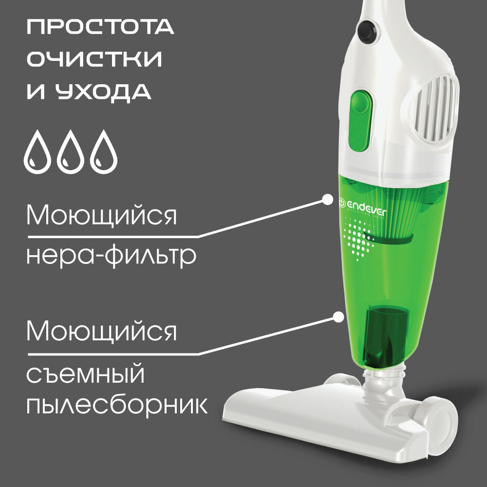 СохранитьВертикальный пылесос циклонного типа Endever SkyClean VC-279, белый/зеленый (90021) интересное: