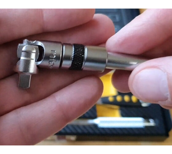 | Дополнительная информация | комплектация: торцевые головки , удлинители для головок – 65 и 115 мм., карданный шарнир, Т-образный вороток – 115 мм., шарнирный вороток – 150 мм, 1/4 " трещоточный ключ – 72 зубца; кейс |