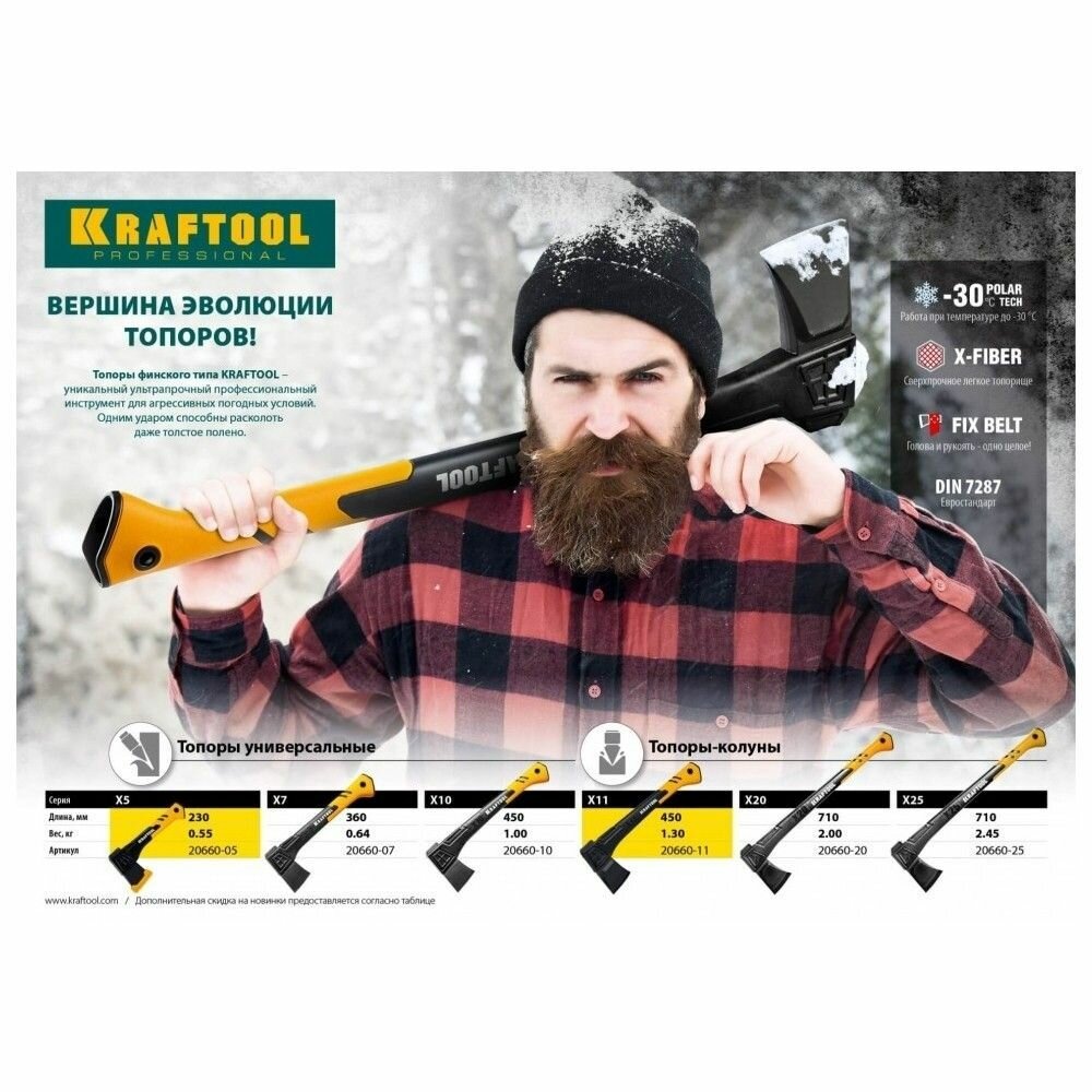 СохранитьKRAFTOOL X5, 440/620 г, в чехле, 230 мм, универсальный топор (20660-05) интересное: