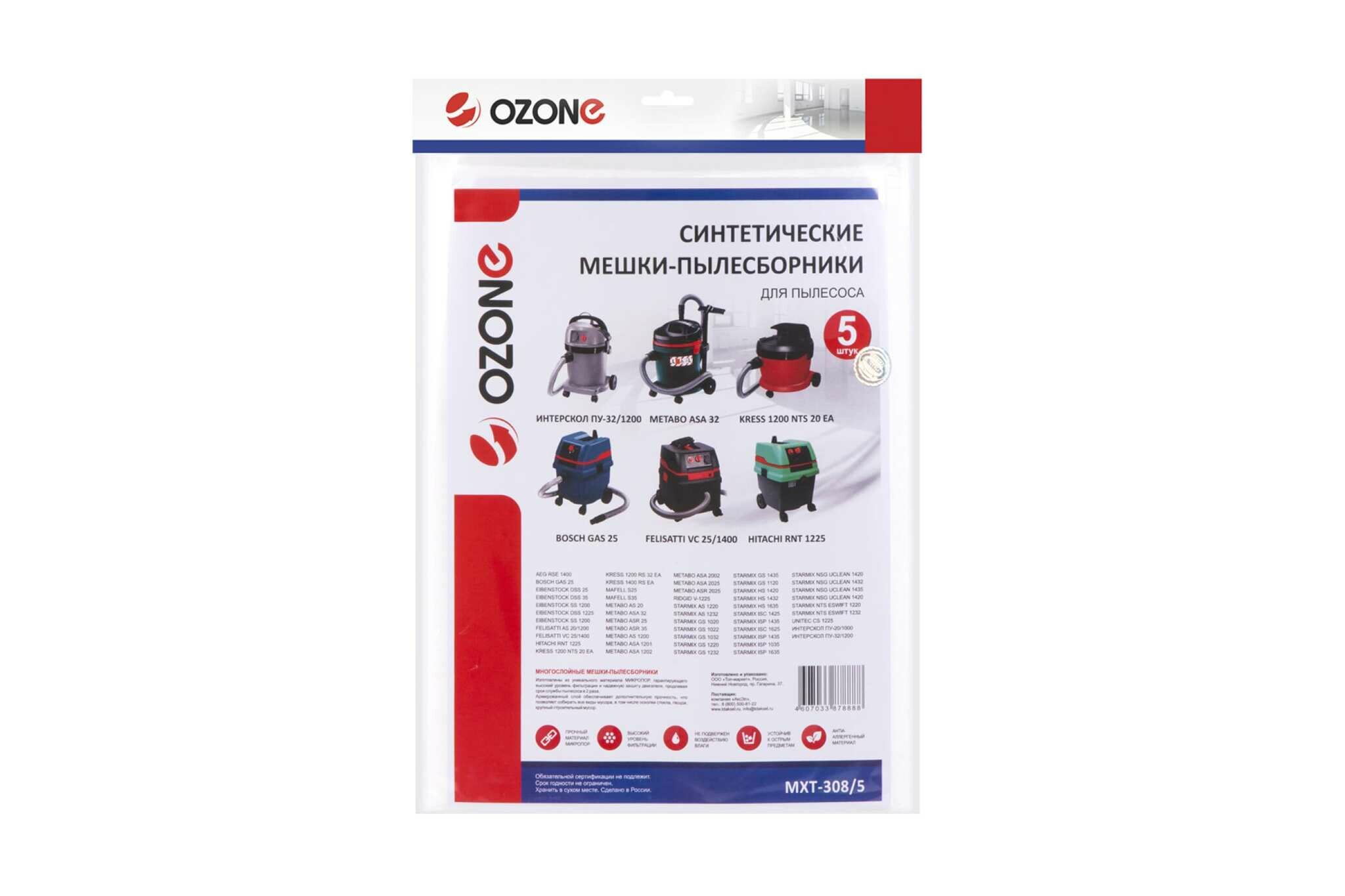 Ozone Мешки для пылесоса BOSCH GAS 25, KRESS 1400, ИНТЕРСКОЛ ПУ-32/1200, STARMIX FB20/25/35, AEG, FELISATTI, HITACHI, METABO, 5 шт., синтетические, не боятся мокрой пыли, Ozone MXT-308/5