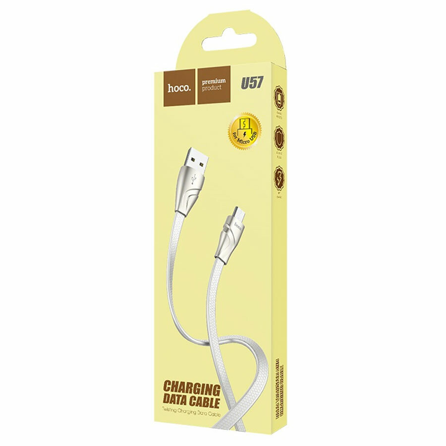 Кабель USB HOCO U57 Twisting, USB - MicroUSB 2.4А, 1.2 м, белый