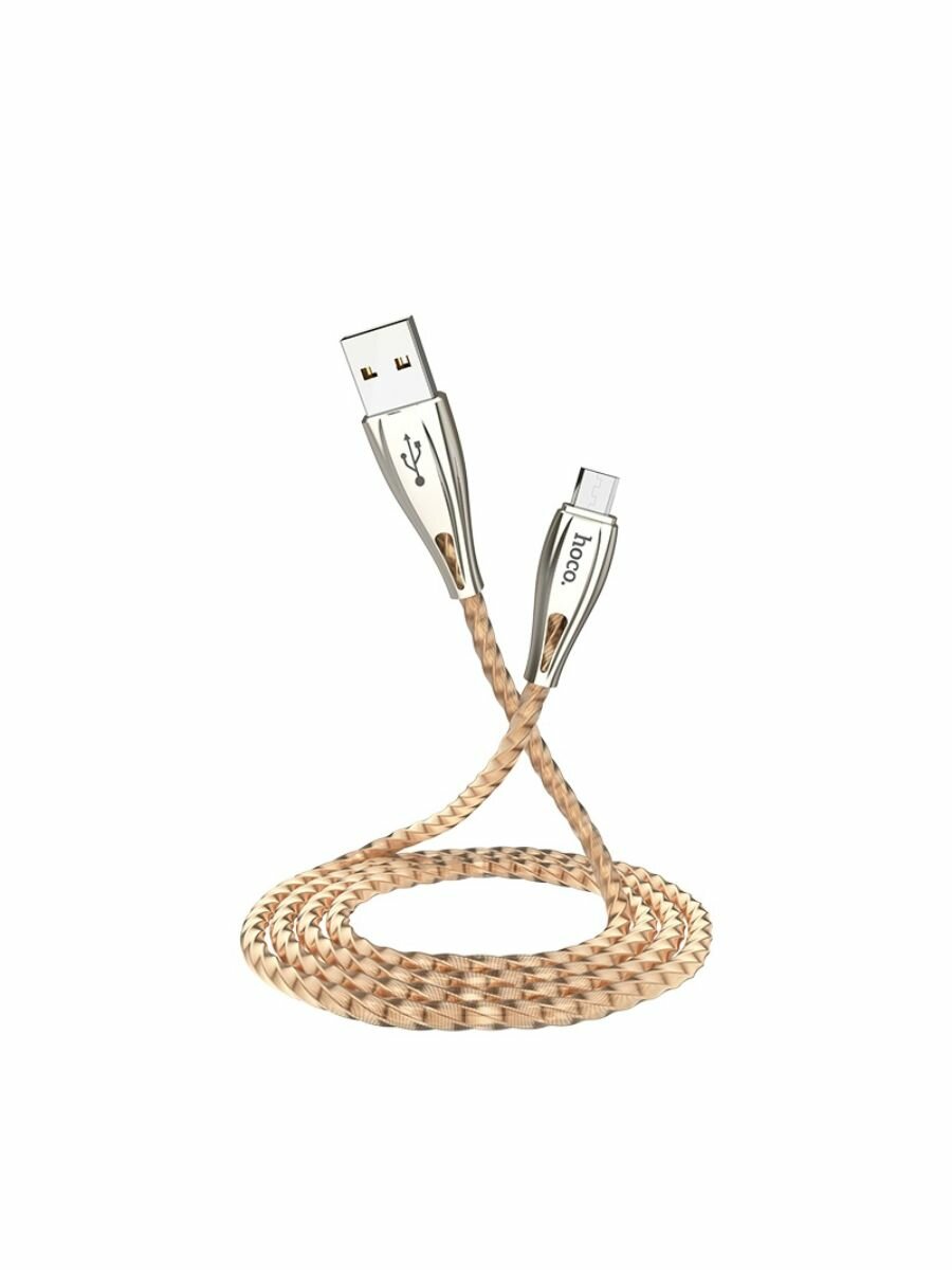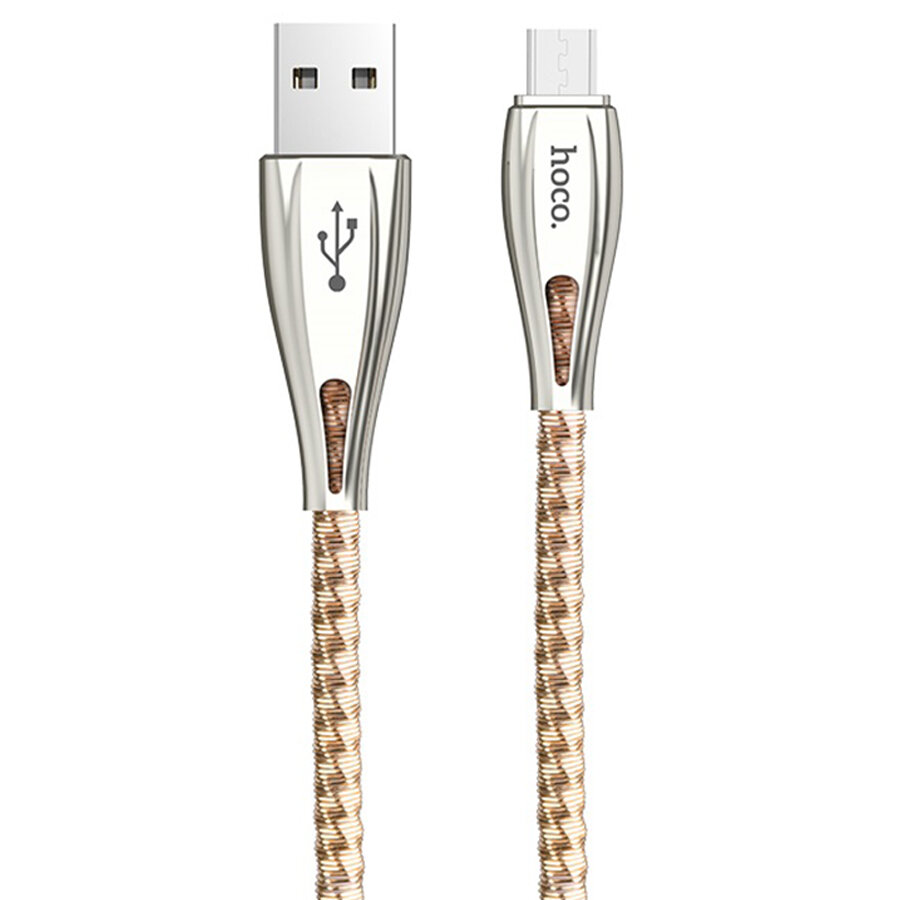 Купить Кабель USB HOCO U56 Metal armor USB - MicroUSB, 2.4А, 1.2 м, золотой