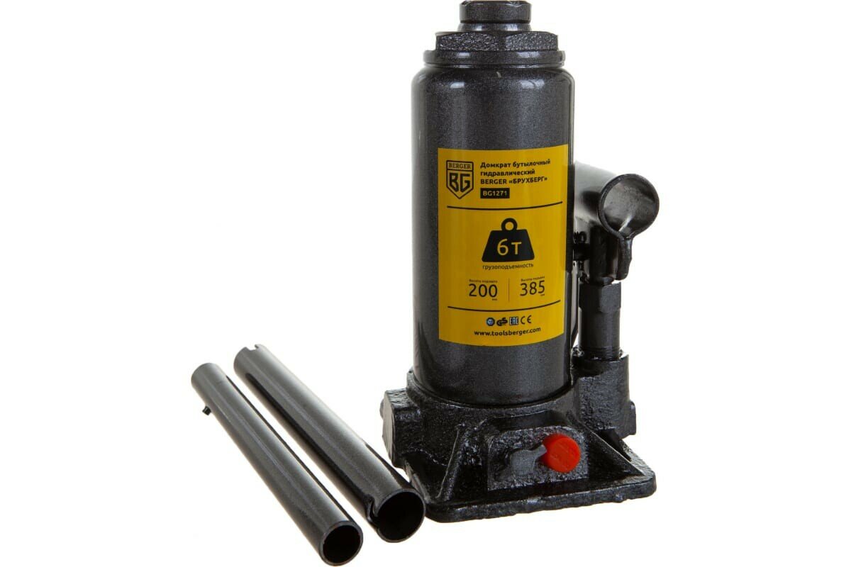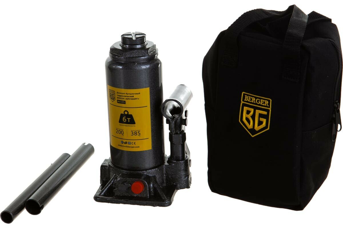 Домкрат бутылочный гидравлический 6 тонн «брухберг» (200-385мм) BERGER BG1271