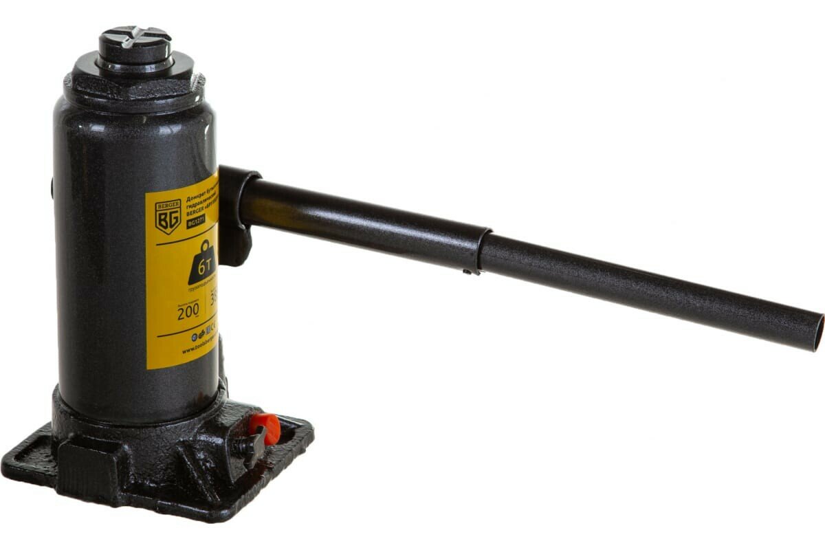 Домкрат гидравлический Berger Bg1271, бутылочный, 6 т, подхват 200 мм, подъем 385 мм .