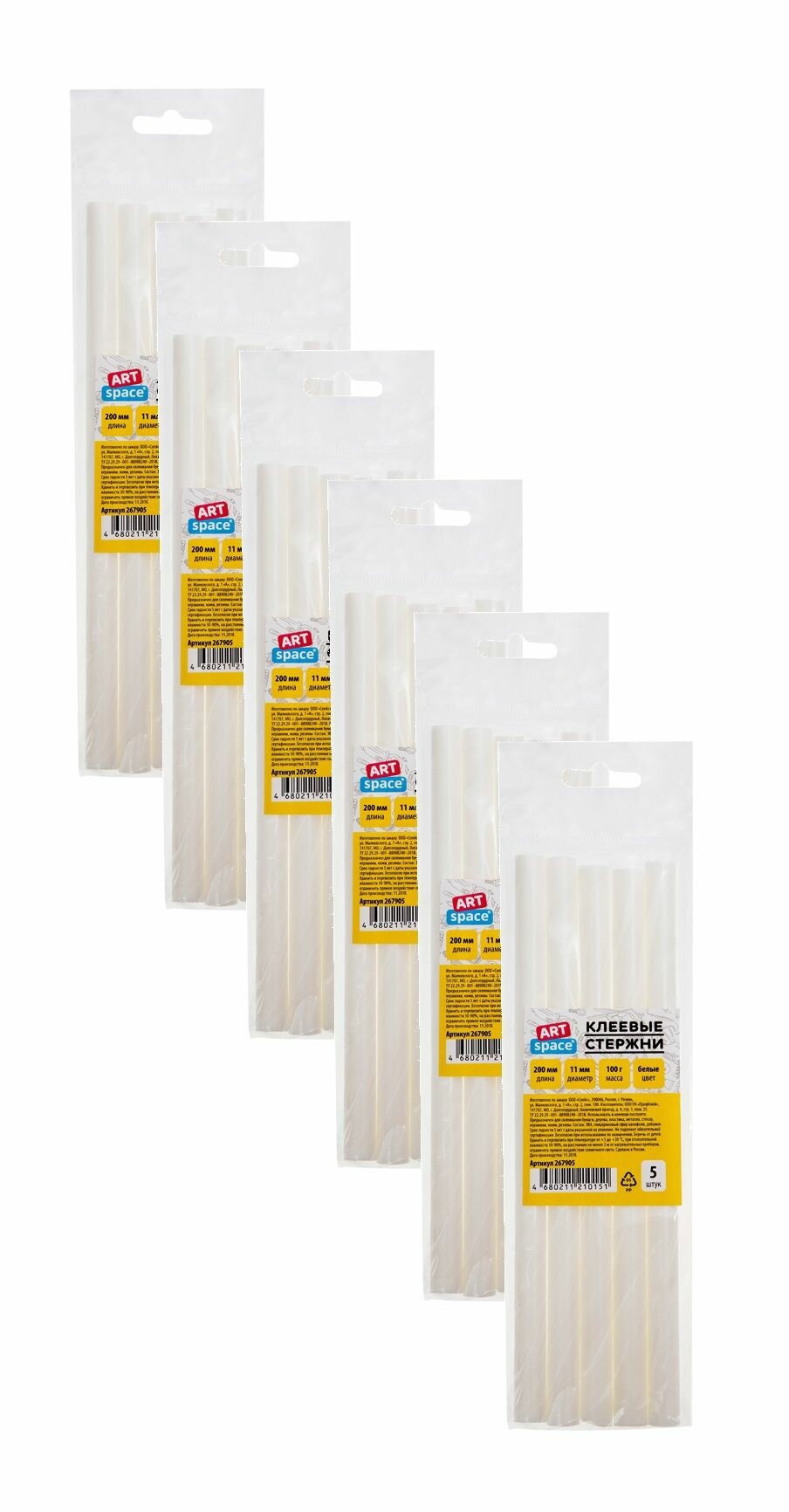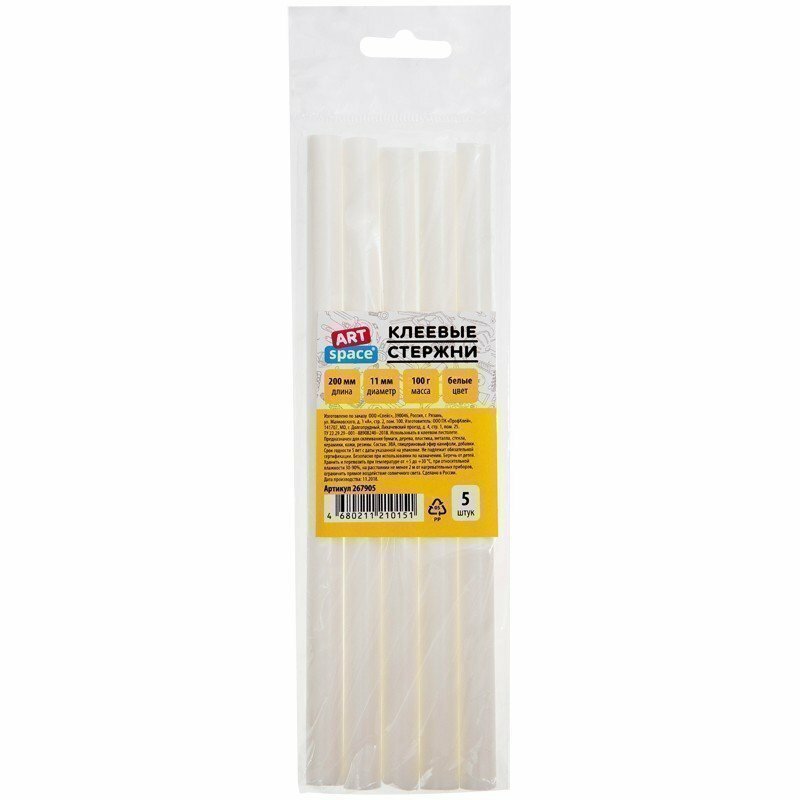 Клеевые стержни ArtSpace, диаметр 11мм, длина 200мм, белые, набор 5шт., европодвес ( Артикул 267905 )