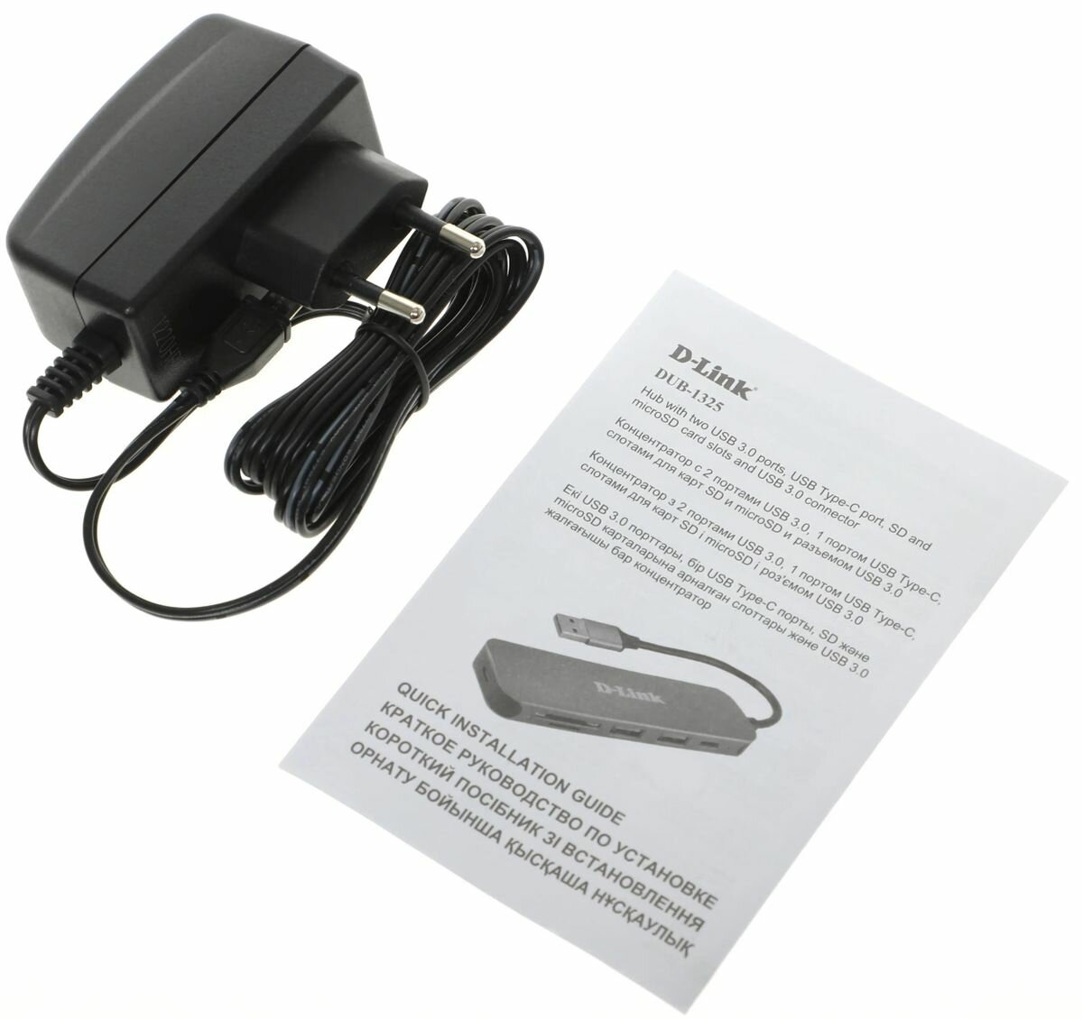 Usb концентратор D-Link DUB-1325/A2A, 2-port USB 3.0, USB Type-C port, SD and microSD card slots Hub.2 downstream USB type A (female) ports, 1 downstream USB type C (female) port, 1 upstream USB type A (male), 1 SD