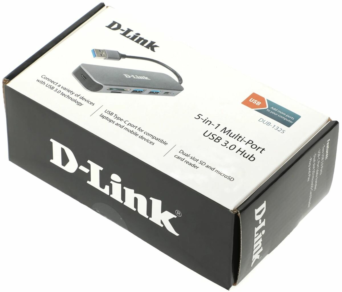 D-Link DUB-1325 A2A Концентратор с 2 портами USB 3.0, 1 портом USB Type-C, слотами для карт SD и microSD и разъемом USB 3.0