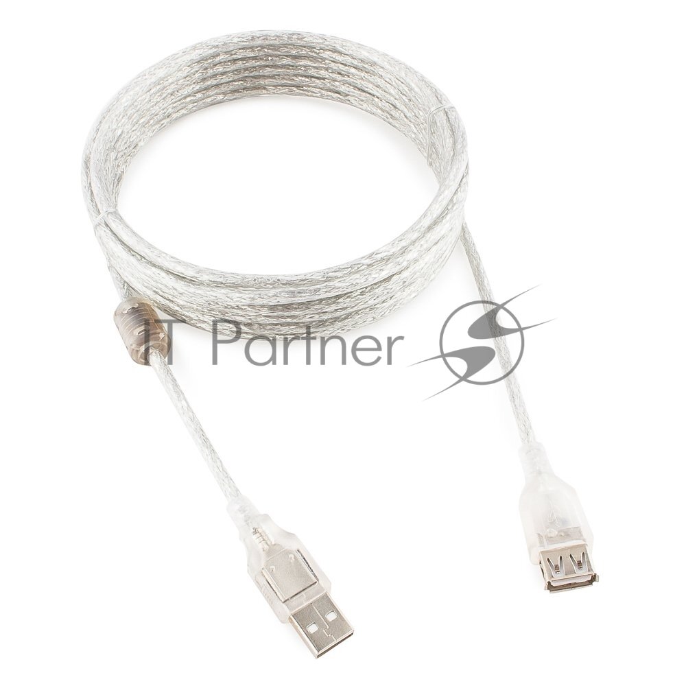Cablexpert Кабель удлинитель USB2.0 Pro, Am/af, 4,5м, экран, 2 феррит.кольца, прозрачный (ccf-usb2-a
