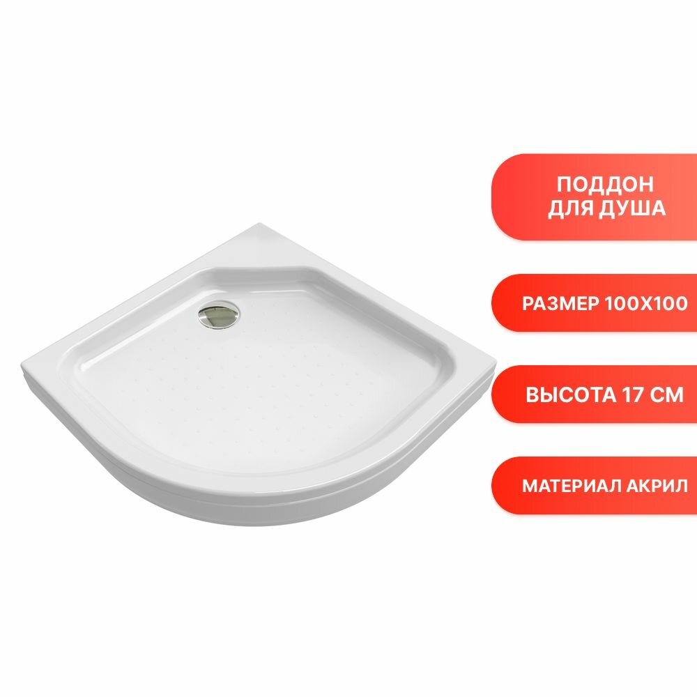 Душевой поддон NG-100-100 (100*100*13) полукруг, поддон для моделей 6607, 6807