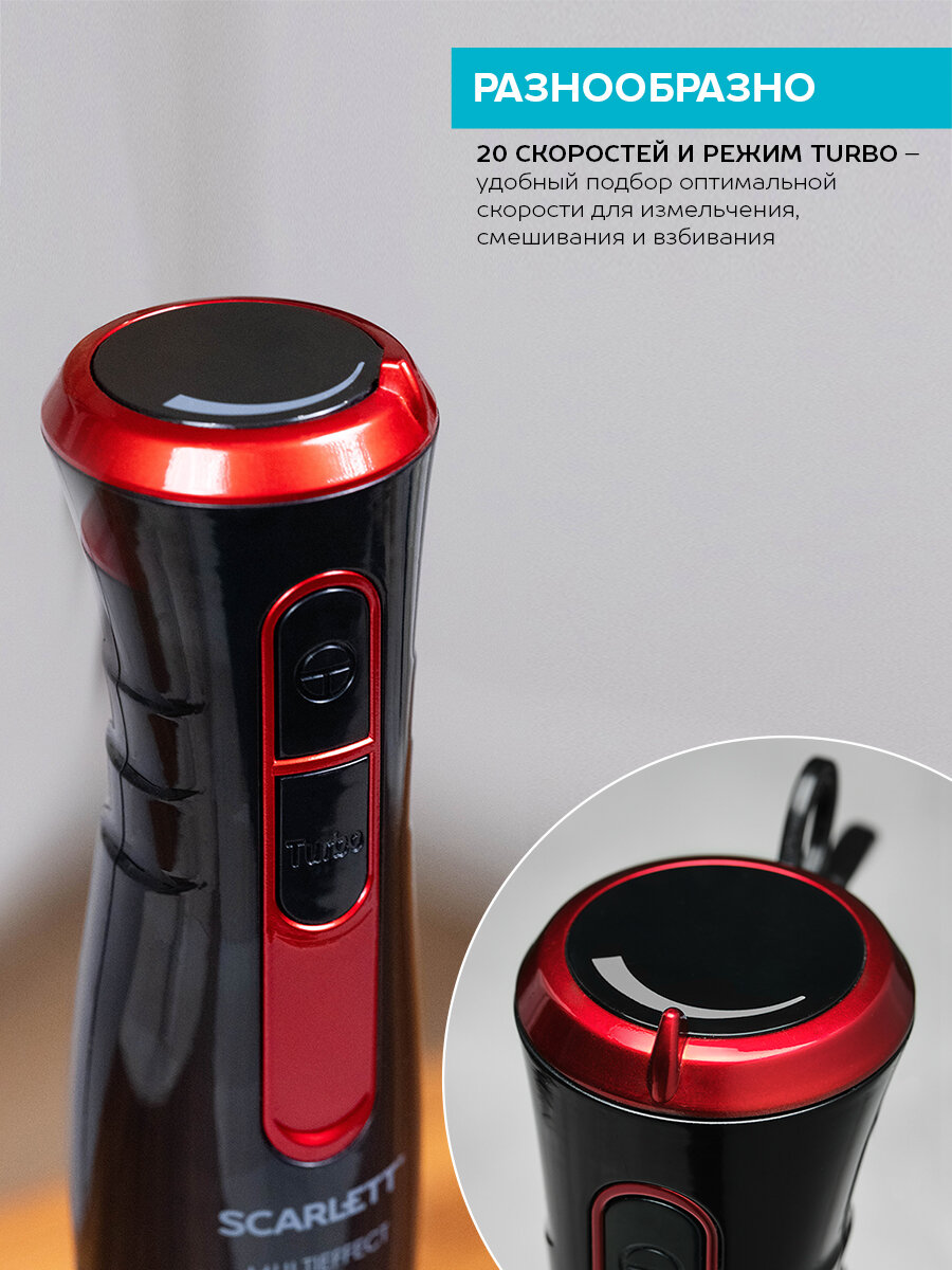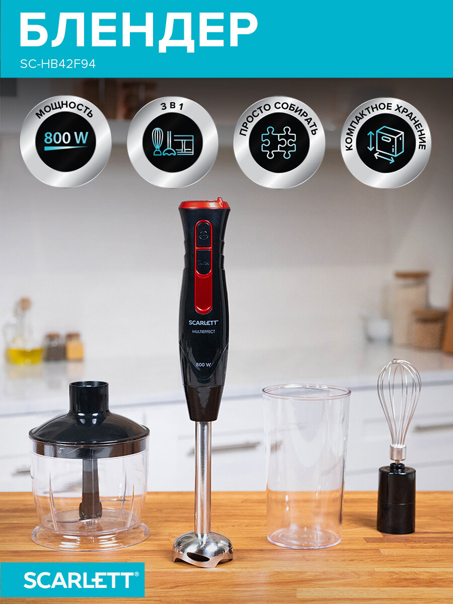 Погружной блендер SCARLETT SC-HB42F94 , 20 скоростей , режим Turbo, нож из стали высокой прочности