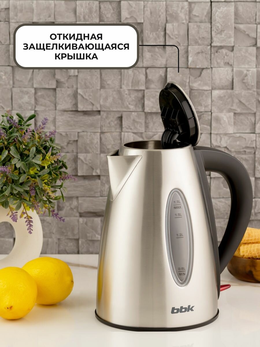 Чайник электрический BBK EK1762S черный/нержавеющая сталь, объем 1.7 л, мощность 1850-2200 Вт