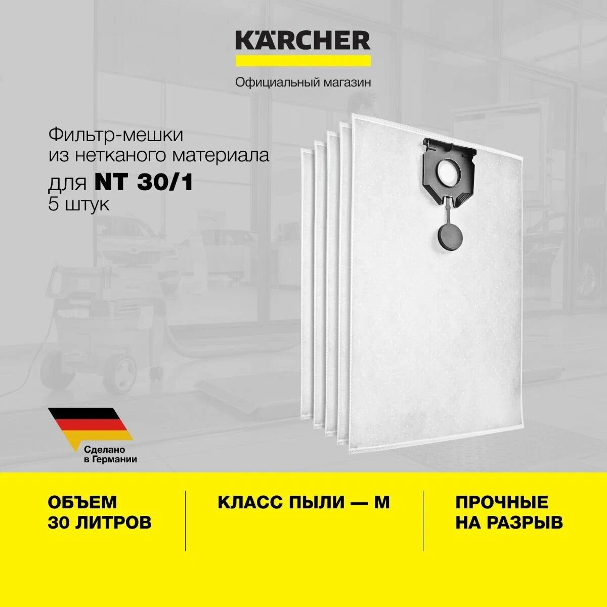Купить Фильтр-мешки из нетканого материала Karcher для пылесосов NT 30, 130 литров, 5 штук