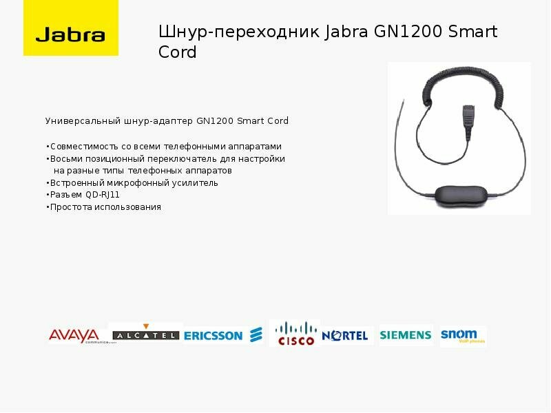 Переходник Jabra GN1216 SmartCord SC черный (88001-99) интересное: