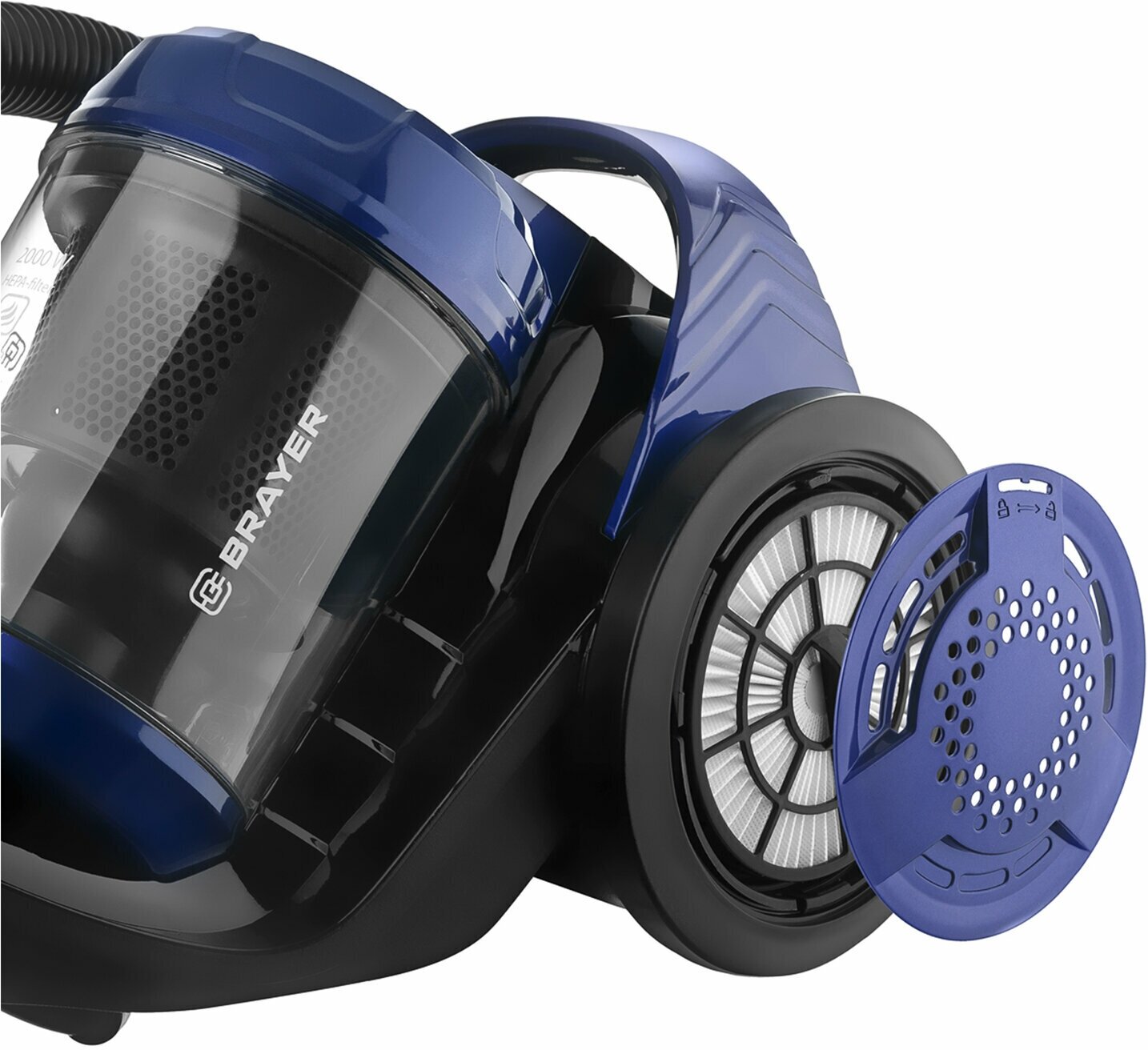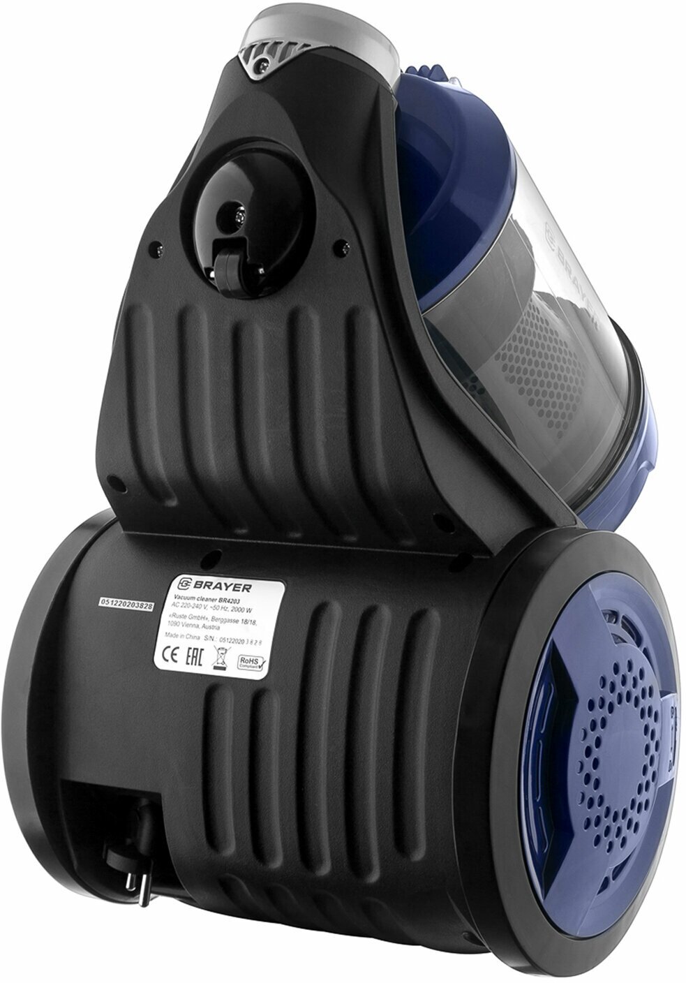 Пылесос BRAYER BR4203 с контейнером "циклон", 2000 Вт, мощность всасывания 380 Вт, черный/синий