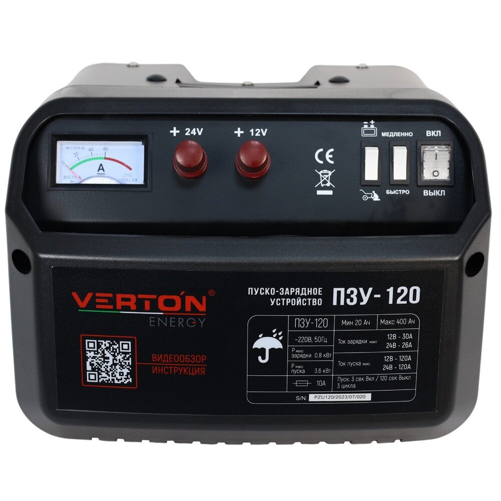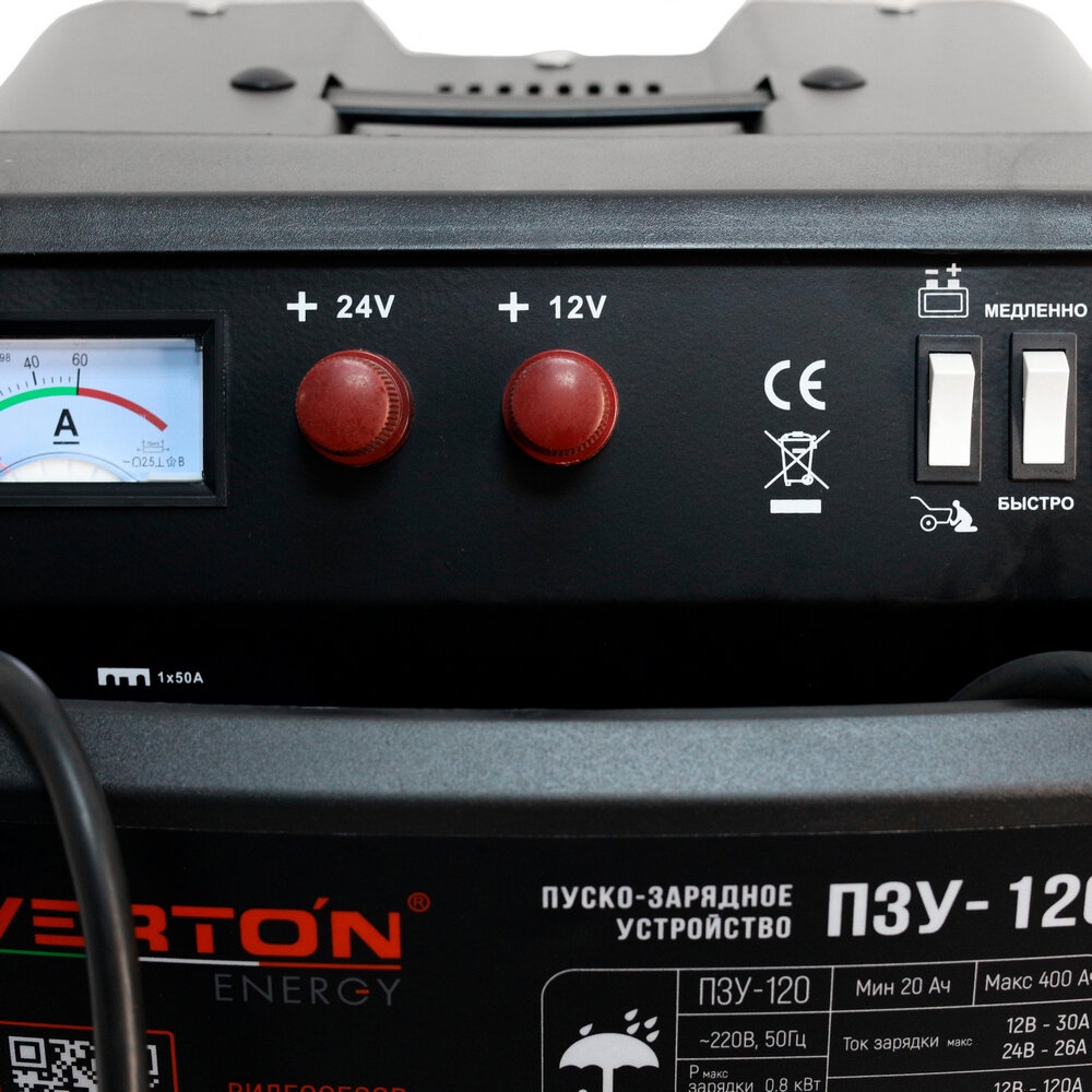Купить Пуско-зарядное устройство VERTON Energy ПЗУ- 120 (12/24,20-400 Ач; заряд 0,8кВт,30А,пуск 3,6кВт)