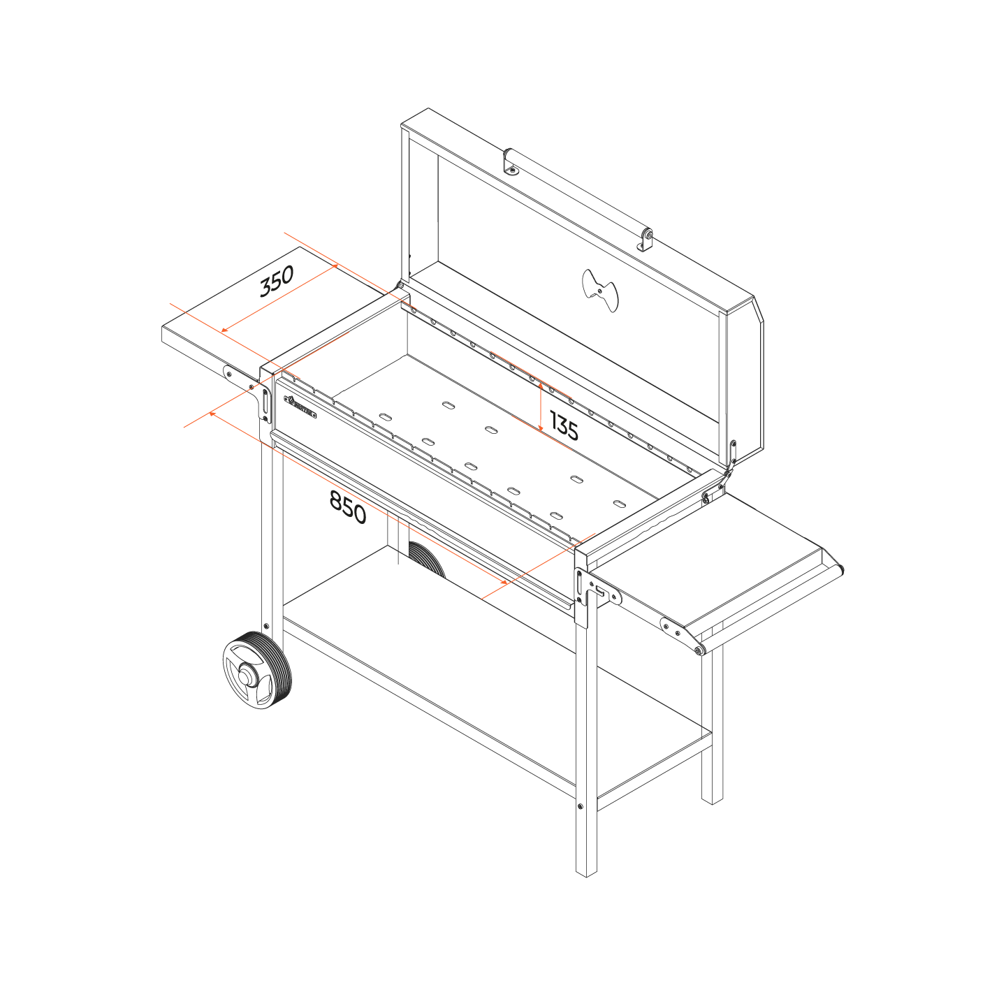 Гриль - мангал передвижной на колесах, с двумя боковыми полками, с крышкой, с термометром GRATAR МАН 305