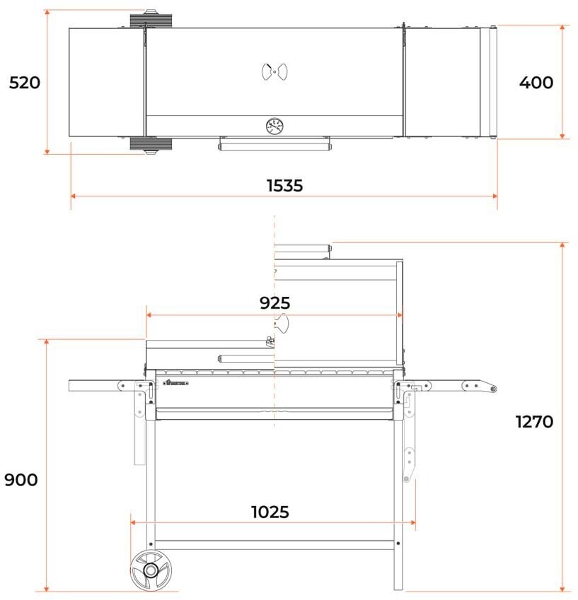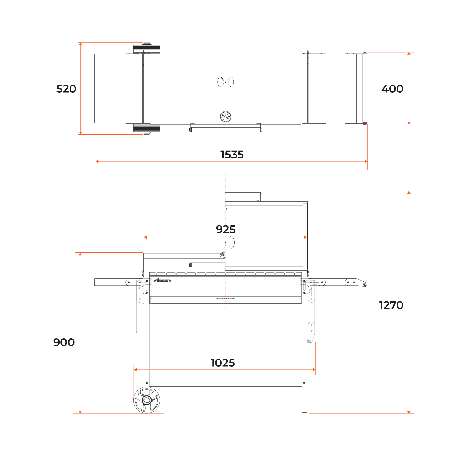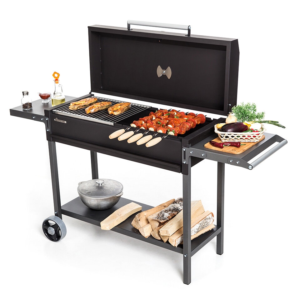 Гриль - мангал на дровах Gratar МАН 305, с колесами, столиками и термометром.
