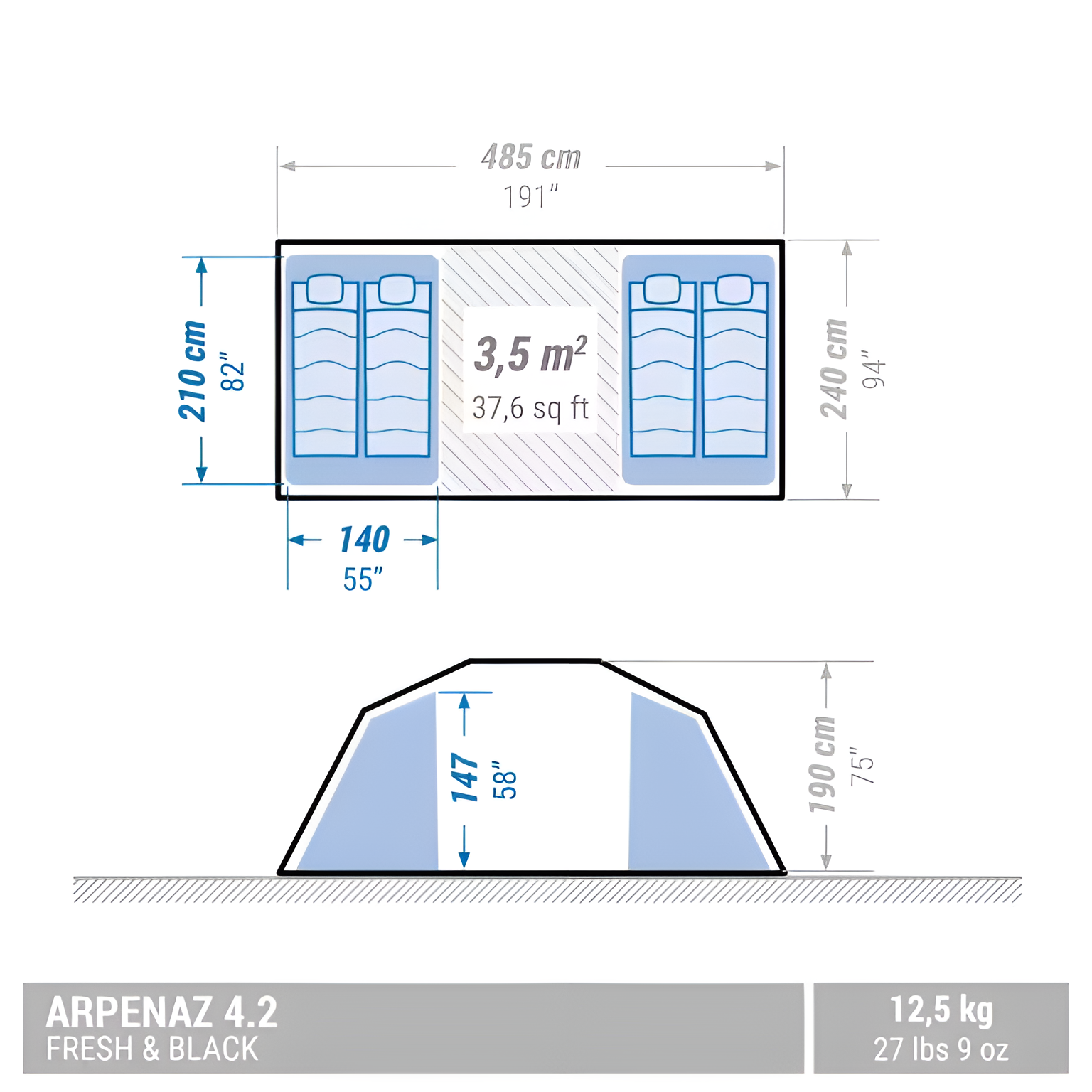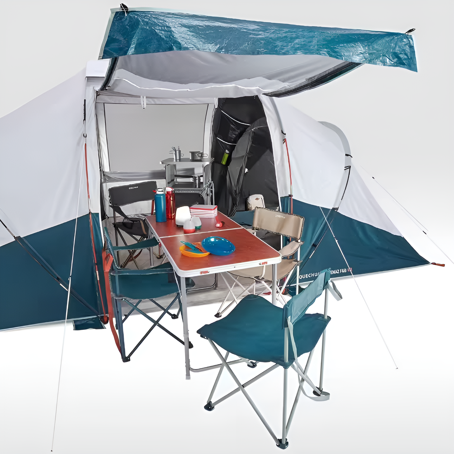 Палатка кемпинговая четырехместная Decathlon Quechua Arpenaz 4.2 Fresh&Black, белый/синий