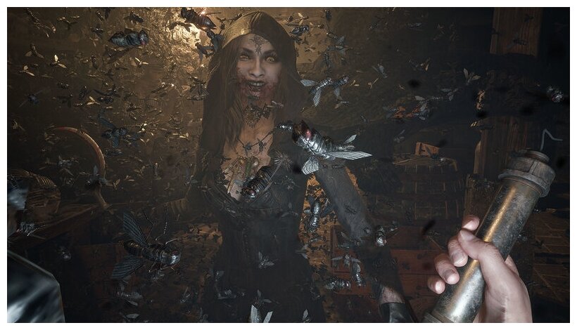 | Минусы: | Первое что мне не понравилось это то что это Ремейк Resident Evil 4, концепция игры в Village таже только представлено по другому, вампиры за место, лас плагас, жирдяй за место торговца, те же печатные машинки, тот же самый замок, да же начало полностью соответствует RE 4, когда мы прибегаем в деревню и на нас нападает орда лас плагаса, в общем тот же RE 4 но только от первого лица |