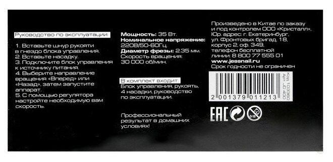 JessNail Аппарат для маникюра и педикюра JessNail JD400 PRO, 30 000 об/мин, 35 Вт, бело-чёрный интересное: