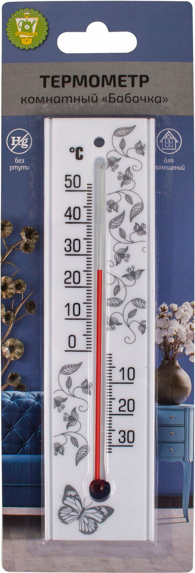 Термометр жидкостный GARDEN SHOW Бабочки комнатный 5х19,8 см интересное: