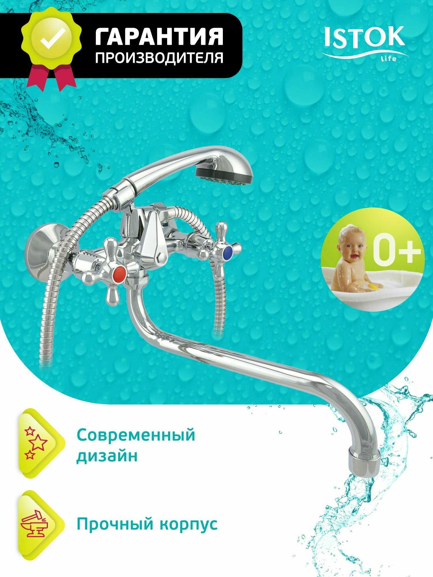 Смеситель для ванны Исток (Istok life) с длинным поворотным изливом, достающим до раковины, в комплекте лейка для душа и шланг. Арт. 0402.714